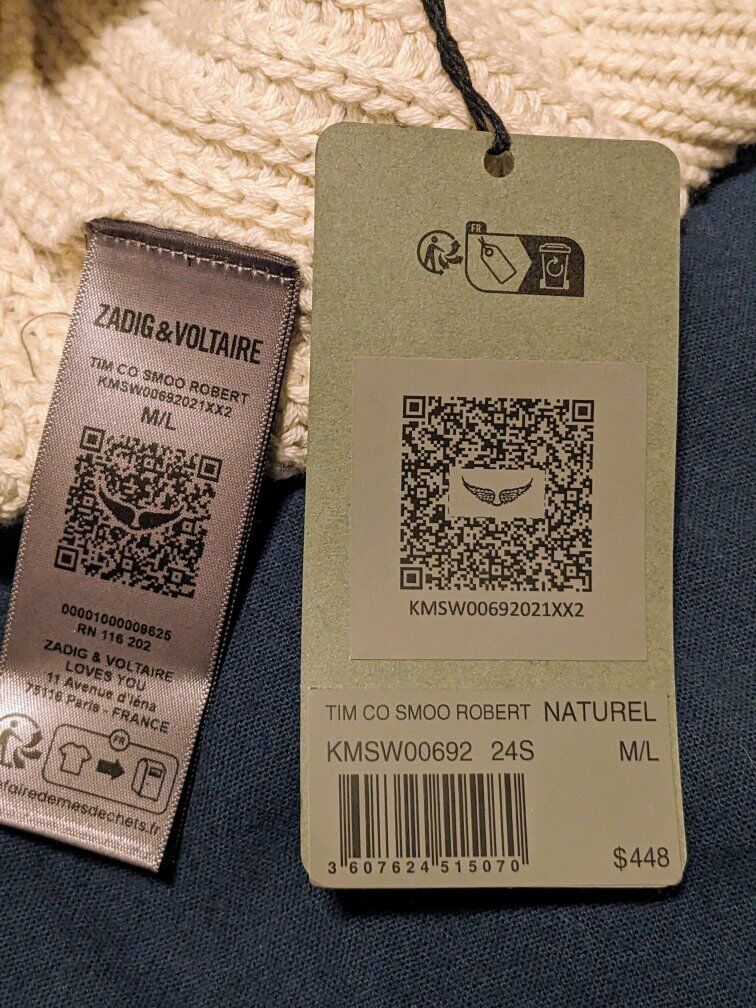 Brand new Zadig & Voltaire Tim Cotton Intarsia Jacquard Regular Fit Crewneck Sweater size M/L.