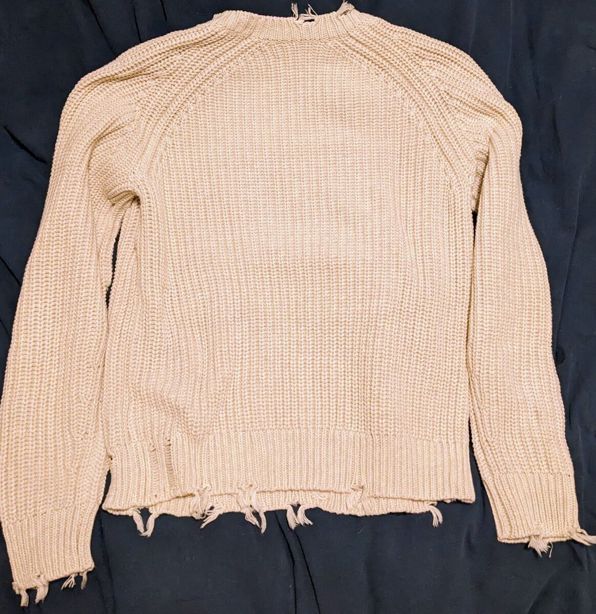 Ribbed crewneck Long sleeves, ribbed cuffs Voltaire Music motif at front Raw-edge detailing Imported Size & Fit Fits true to size, order your normal size Designed for a regular fit 100% cotton Hand wash