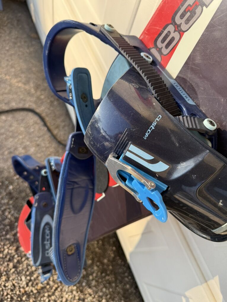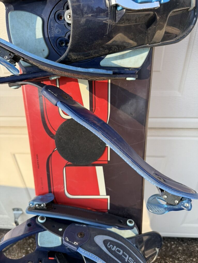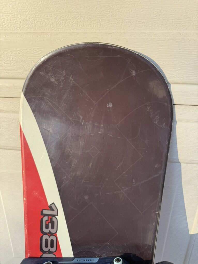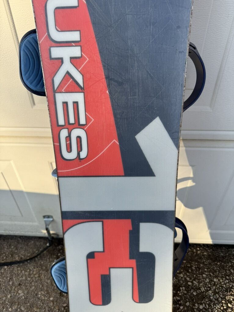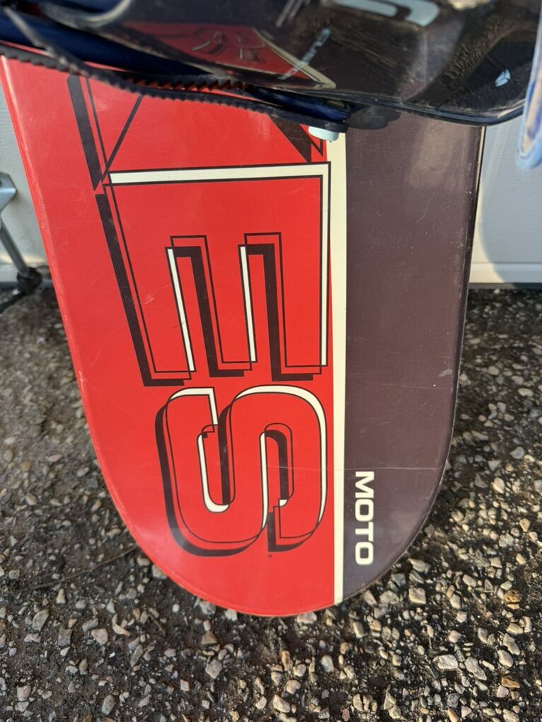 Dukes MOTO 138 CM Snowboard and Burton Custom Bindings Large Used Good Condition See Pics