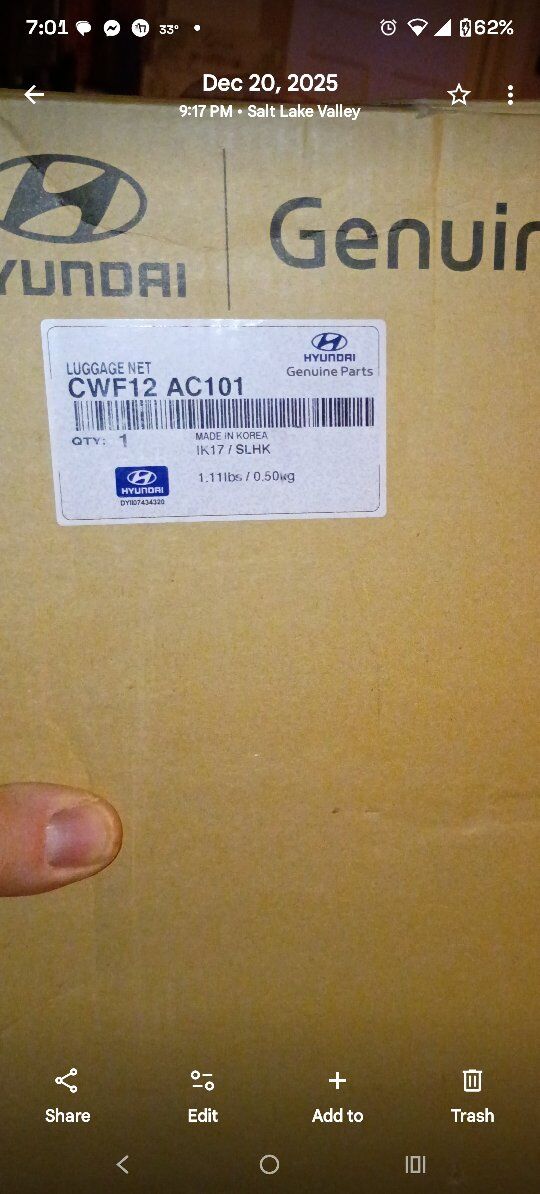 ZelleHyundai part number CWF12-AC101 for a cargo net fits the 2021, 2022, 2023, 2024, and 2025 Hyundai Tucson models, specifically for trims without a subwoofer, such as the SE and SEL trims, as it's the standard envelope-style MSRP is $74.00