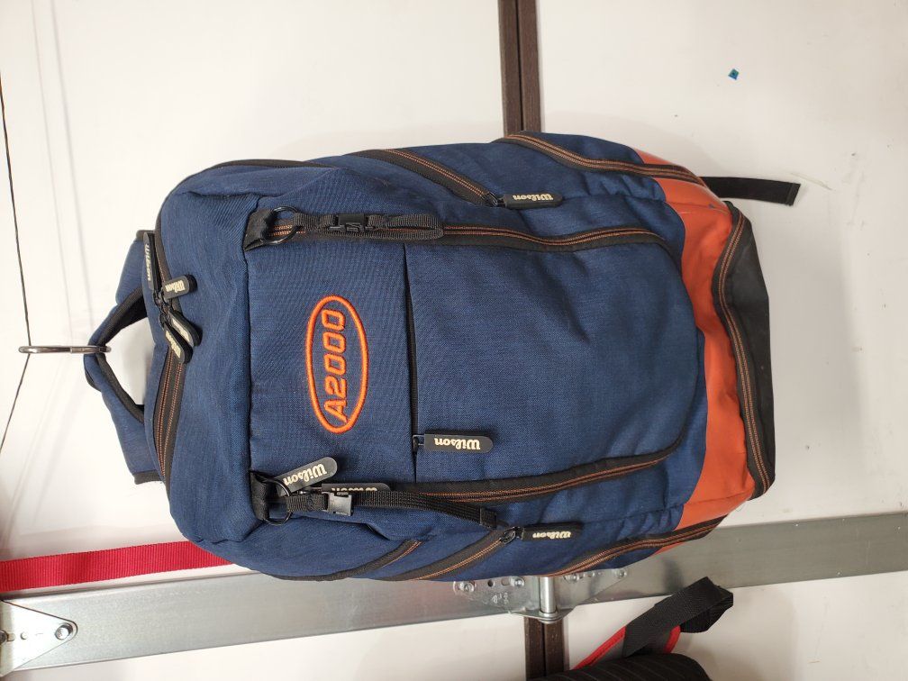 The Wilson A2000 can be used for baseball gear or as a school backpack; it has a laptop/ book pocket and a nice clean look.
