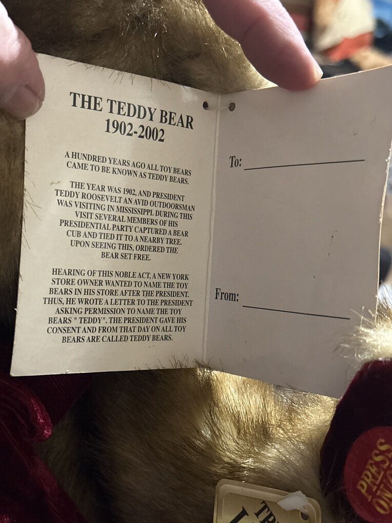 PayPalCollectible 100th anniversary of the first Teddy bear! All tags still attached. It talks too and tells the story in the video.