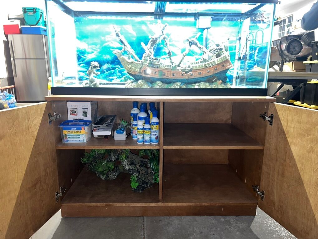 $800 Aquarium and supplies retail value $400 Cabinet raw materials cost (not including labor)