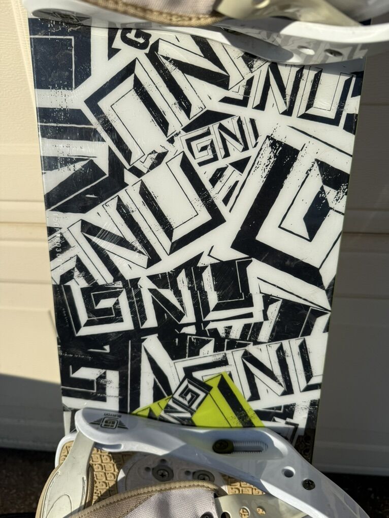 G N U G Series. Snowboard 150 CM and Burton Freestyle Bindings Large Used Very Good Condition See Pics