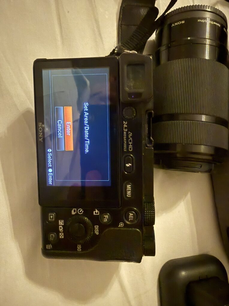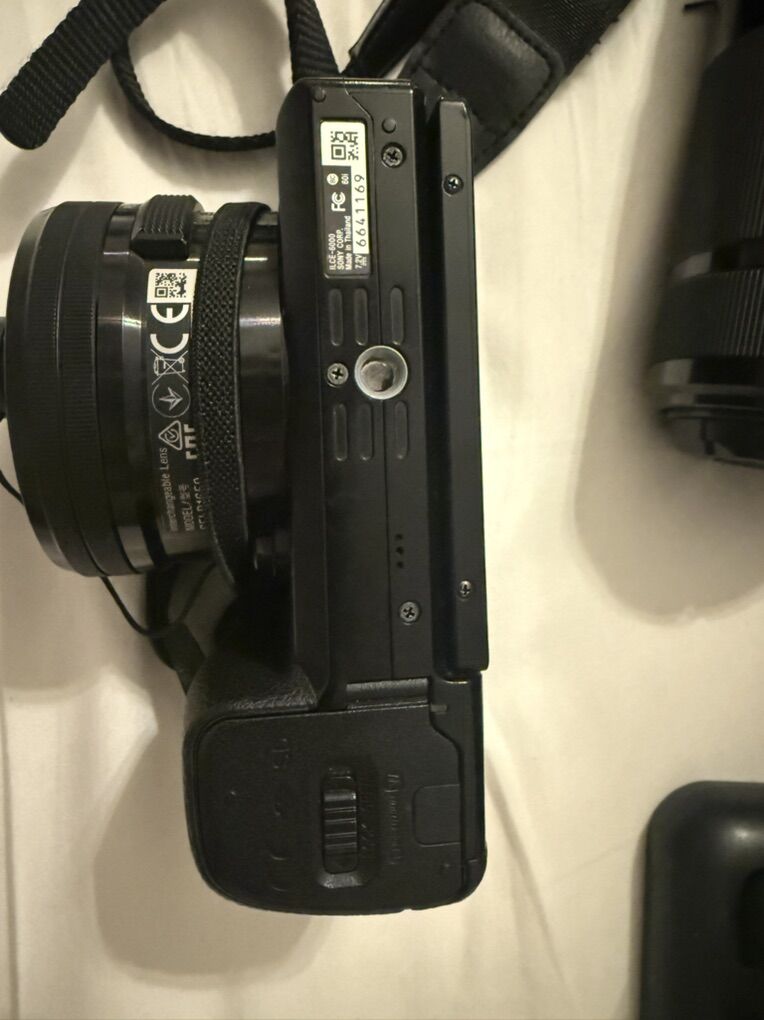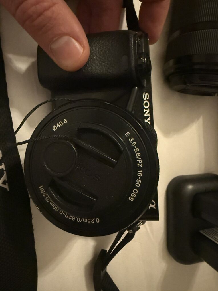 ApplePayListing is for Sony Alpha A5000 mirrorless camera, 16–50mm and 55–210mm Sony lenses, 3 batteries, charger, and a nice camera bag.