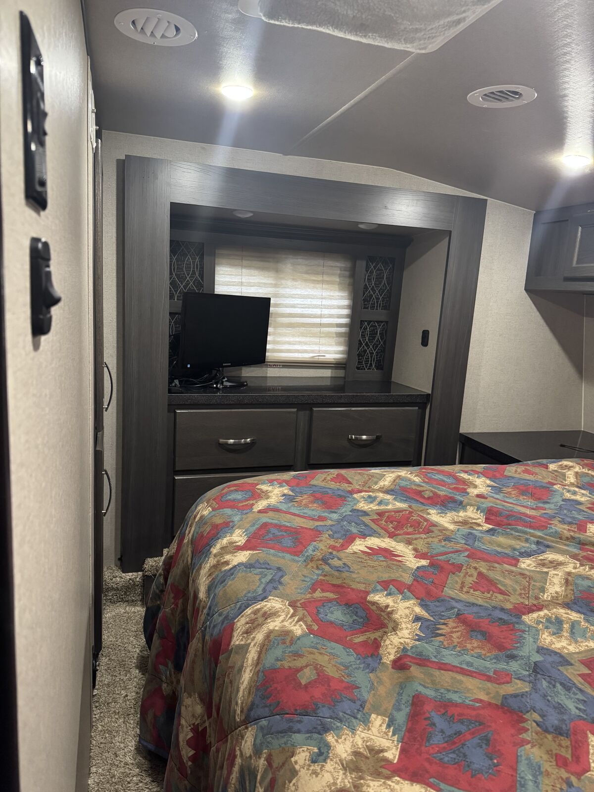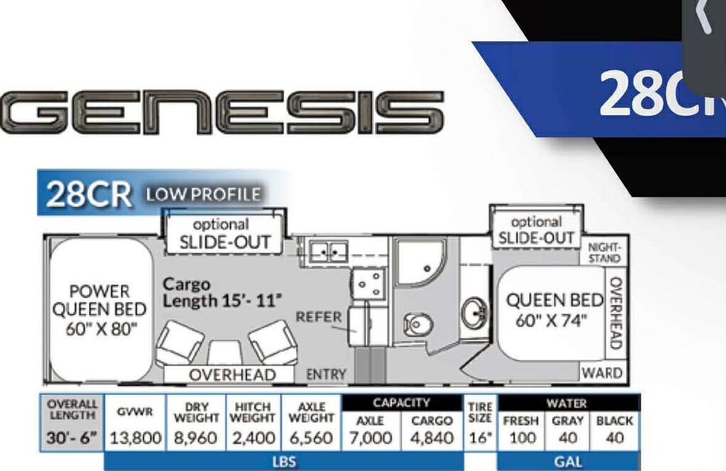 Details & Features: • Model: CR28 • Living Space: 28 ft • Overall Length: 30’6” • DVD player, TV, sound system inside and outside • Two slide-outs • Factory go power solar - 2000 watt inverter • Two queen beds in the rear • Private bedroom with a regular-size king bed (like new) • Couch converts into an additional bed • Cargo Space: Over 15ft – plenty of room for all your toys • On-board generator: Only 128 hours • Always well maintained and lightly used