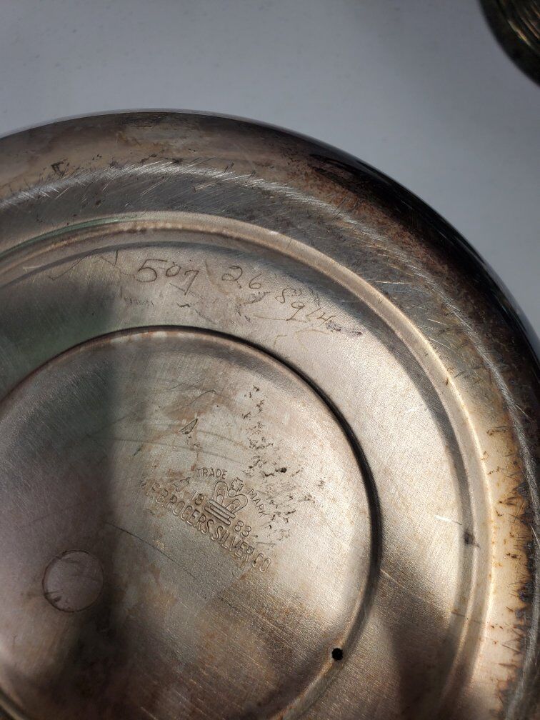 All 3 pieces are tarnished from years of storage, but they'll shine up perfectly with a little elbow grease.