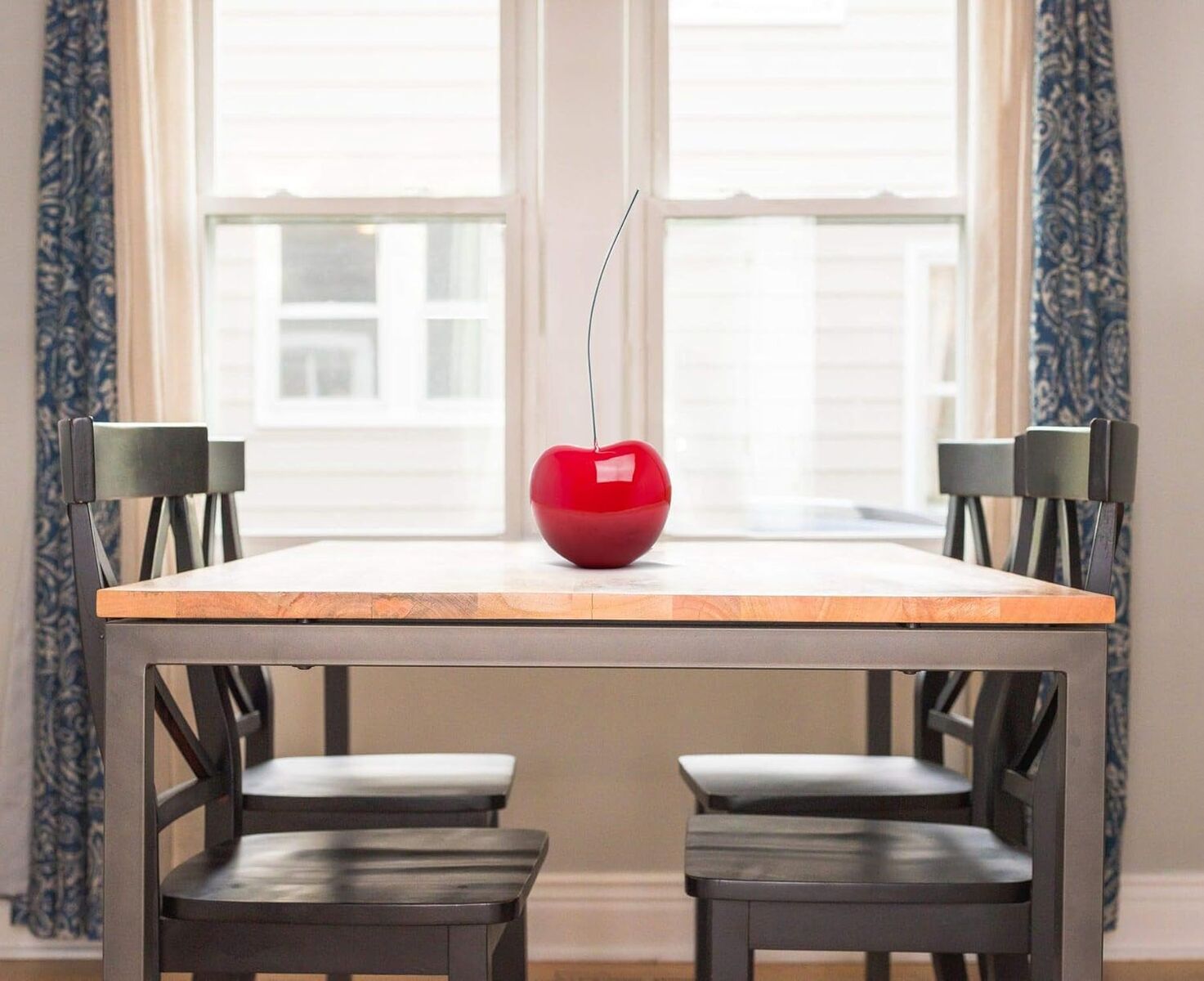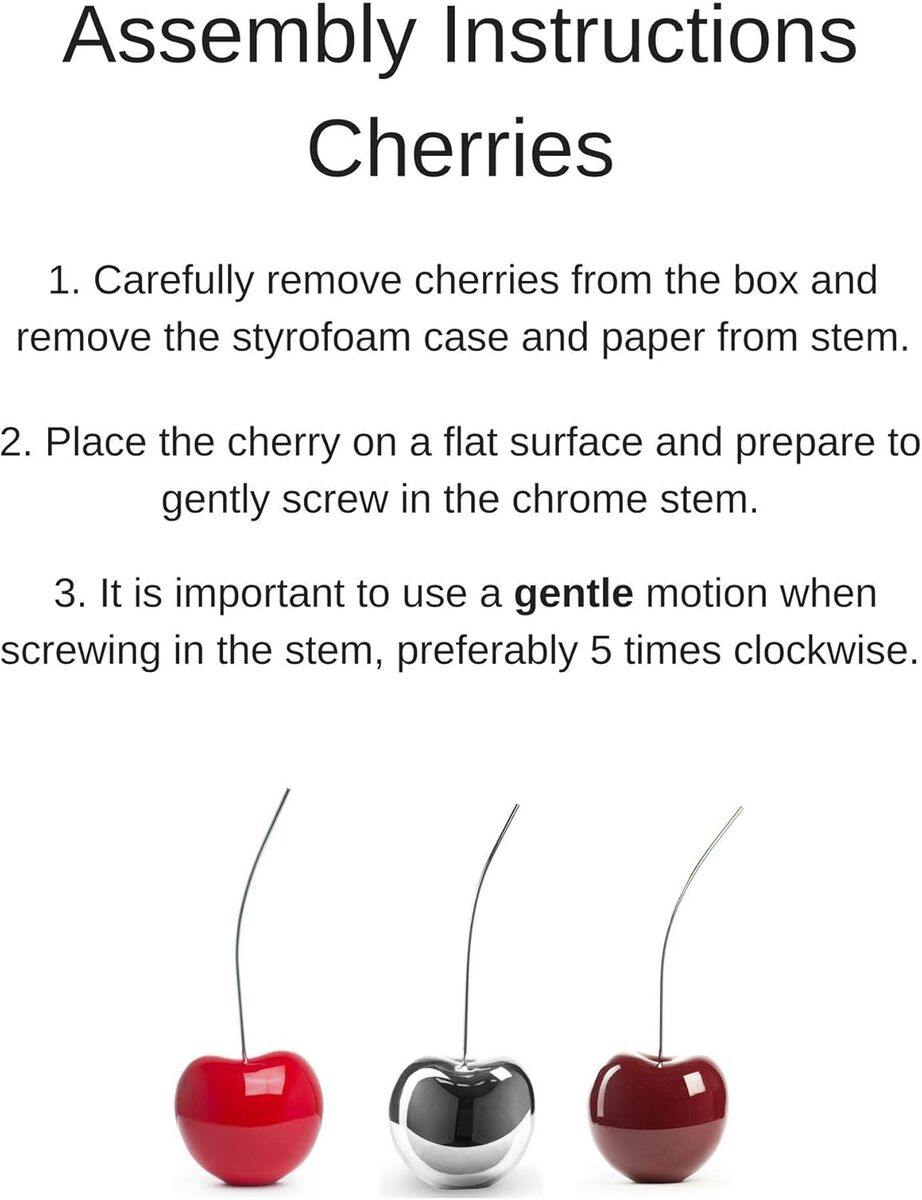 CashAppFinesse Decor Modern Polished 25" Bright Red Cherry Sculpture with Stainless Steel Stem, Resin