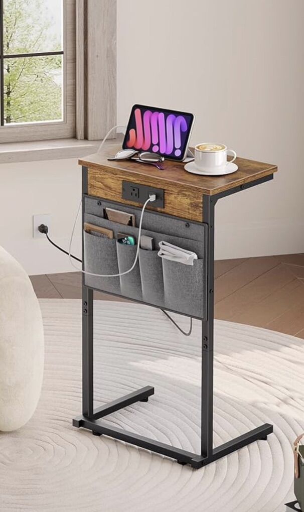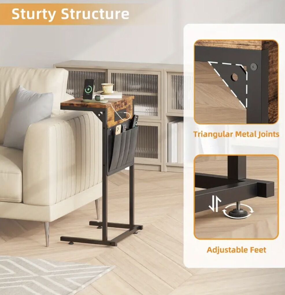 ️ Built-in power outlets + USB & Type-C ports ️ Slim C-shaped design slides easily under sofas & beds ️ Integrated storage for books, remotes, or essentials ️ Quick & easy assembly