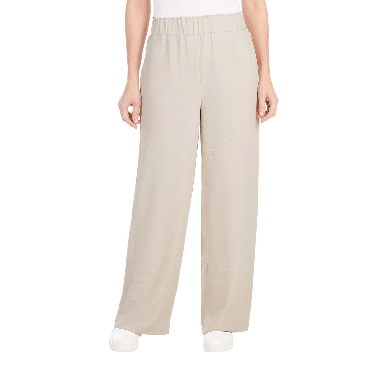 Hilary Radley Women's Wide Leg Crinkle Pants offer a comfortable and stylish option for various occasions. These casual wide-leg pants feature an elastic high waistband for a secure and relaxed fit, along with a roomy palazzo design. Crafted from lightweight crinkle fabric, they provide a loose and baggy fit, perfect for lounging or daily wear. The pants include real front slash pockets and faux back welt pockets, adding both functionality and a touch of style. Their plain solid color makes them versatile for pairing with jackets, t-shirts, crop tops, or blouses, suitable for work, home, or a night out.