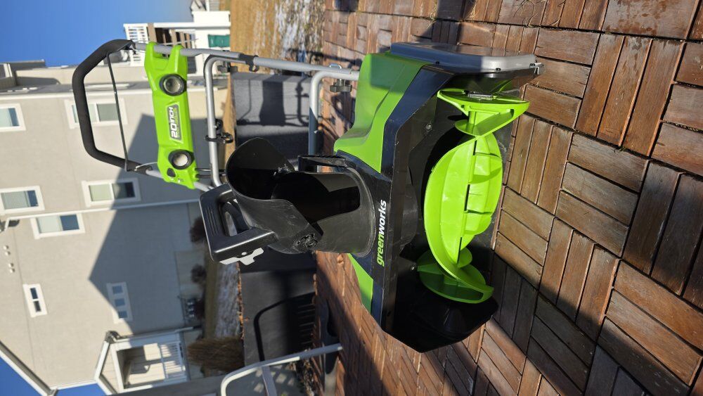 Greenworks 20-inch corded electric snow blower, purchased in 2020 and well-maintained. Works great and is perfect for driveways, sidewalks, and walkways. Easy to start (push-button), lightweight, and much quieter than gas models. No gas, oil, or maintenance needed.