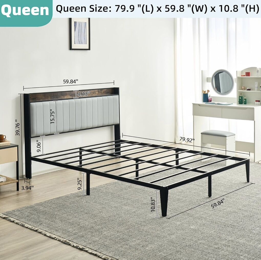 ApplePay️ Modern Queen Bed Frame with Storage Shelf