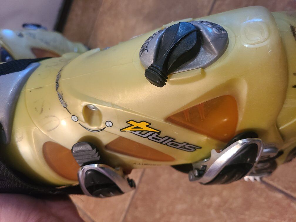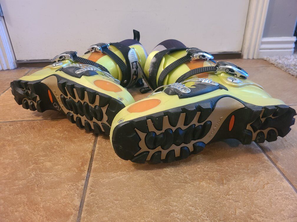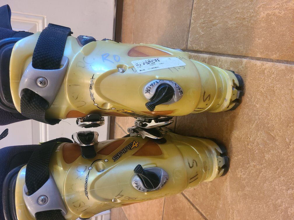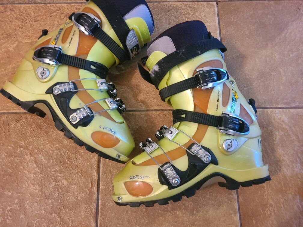 Scarpa Spirit 4 Alpine Ski Touring Boots w/Booster Ankles Straps. telemark and back country ski boots. shell size 322, men's shoe size 11.5. great condition, has the ski, walk switch in the back and super grippy base for walking and hiking.