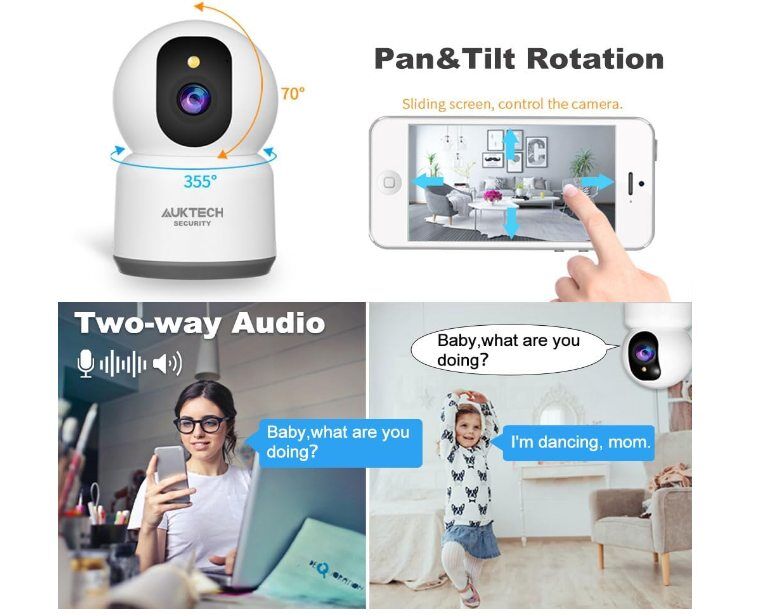 Zelle4MP Ultra-clear Day and Night: Record video in full high-definition (1440P) resolution for stunning brighter images day and night. You can see exactly what's happening in and around your home in full color even in low-light Instant Detection and Notification: As soon as motion is detected the camera will automatically track, follow the moving object, and then send alerts to you to protect your home security while you are away Two-way Audio & Multi-user Sharing: thanks to the built-in microphone and speaker, you can hear what is happening around the camera and communicate not only with visitors but also with your family in real time via your phone APP. Our app allows you to create multiple family accounts and share the wifi camera with your family (up to 10 users) to see the live view at the same time 360° View and Wider Application: The home security camera can rotate its head 355° horizontally and 70° vertically, so you can control it left/right/up/down via your phone APP to get a full view of the entire room. It can be mounted in your house to watch over the elderly, children and pets. And it is widely used to monitor home, office, store, etc Voice Control: For additional ease of use, Connect your wifi camera with Alexa echo or Google assistant for complete control over your surveillance. Use a simple voice command to activate your camera