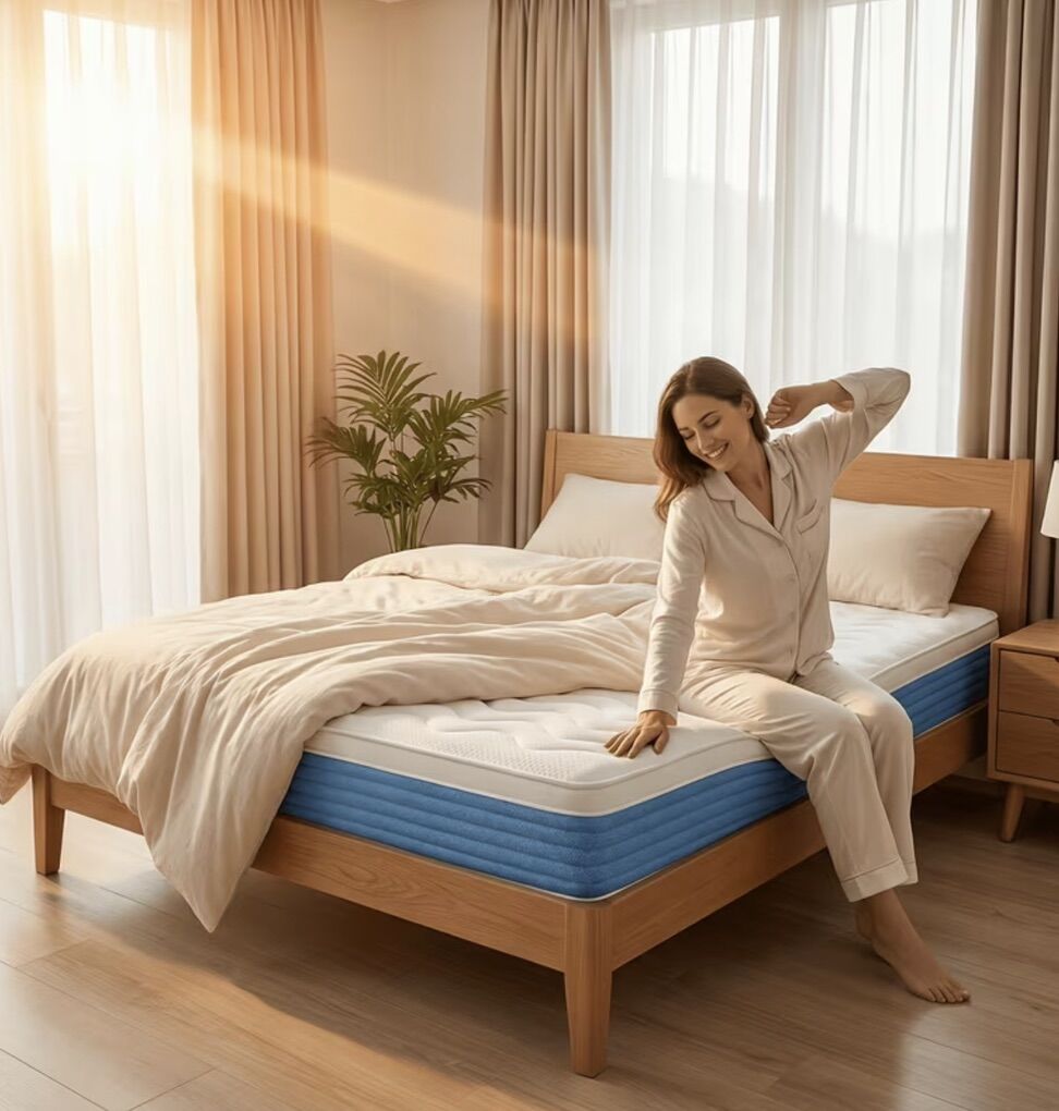 Hybrid design: memory foam + pocket springs Cool, breathable & motion-reducing for better sleep Fits any queen bed frame — no box spring needed CertiPUR-US® certified materials
