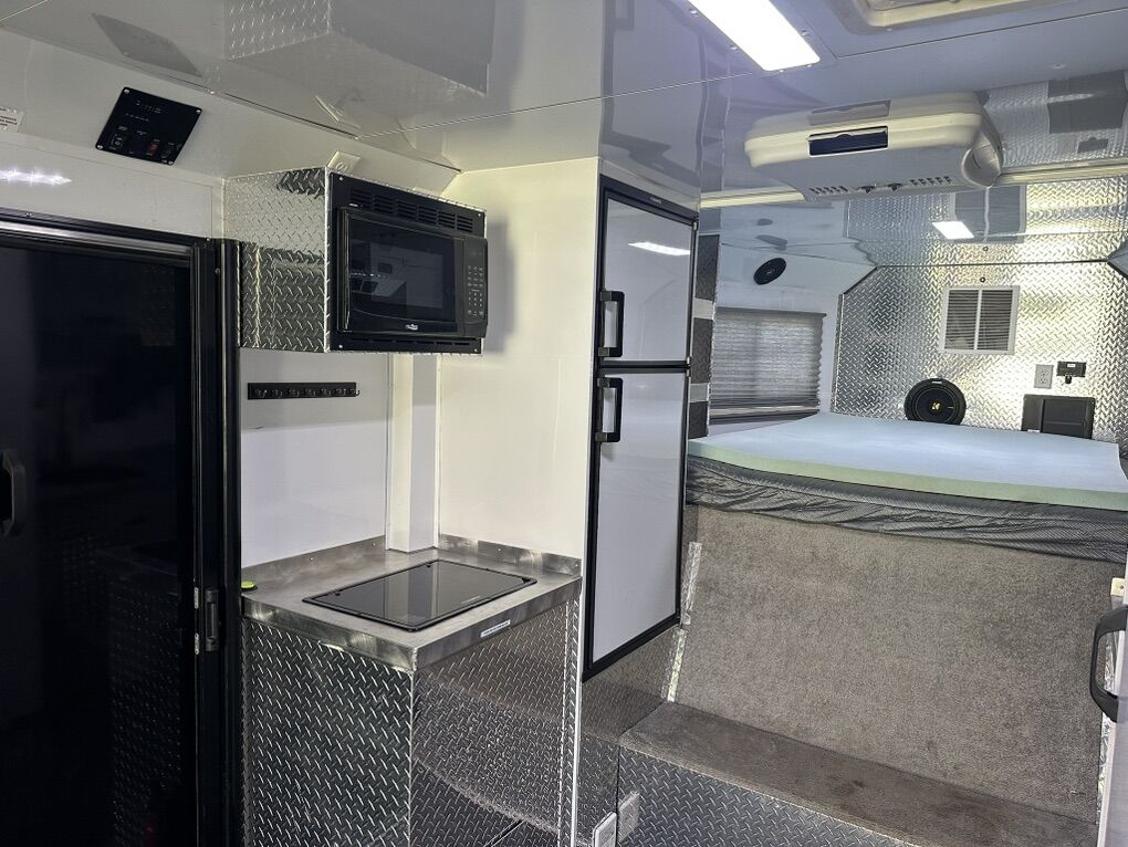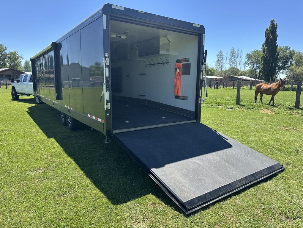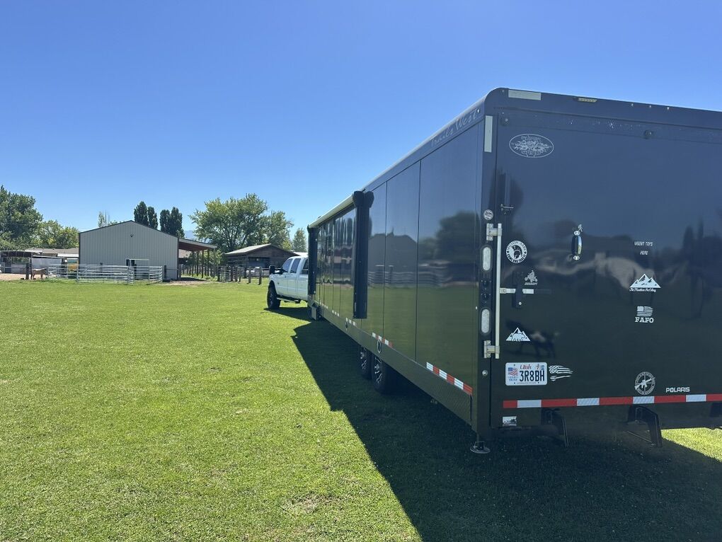 2021 Trails West Free Ride RPM 34', Great Trailer, all aluminum constructions (steel frame), single piece aluminum roof, Solar, Inverter, Large Propane Tanks, Newer 6V batteries, Newer Goodyear tires, Extra Cabinets Installed, Stabilizer Jacks, Stereo system w/subwoofer, Hydraulic rear ramp, Hydraulic front jack, 2 AC units, Included w/ purchase 2 Generac iQ3500 generators, Linked together gives you enough amperage to run ACs and Microwave, Has a couple bumps and bruises but overall good. This beast will hold 2, 4 seat RZRs or whatever you want to fill it up with. When purchased we opted to install the extra cabinet space which is nice, has front Queen bed, Futon and rear bunks, sleeps 6 comfortably with plenty of room to throw air mattresses down. Holds 60 gallons of fuel, 50 gallons of fresh water. GVWR is 13,547