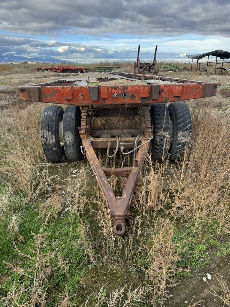 Venmo40’ flatbed with dolly. We used it behind a tractor to haul hay. Brakes are disconnected. Tires hold air. Will entertain reasonable offers.
