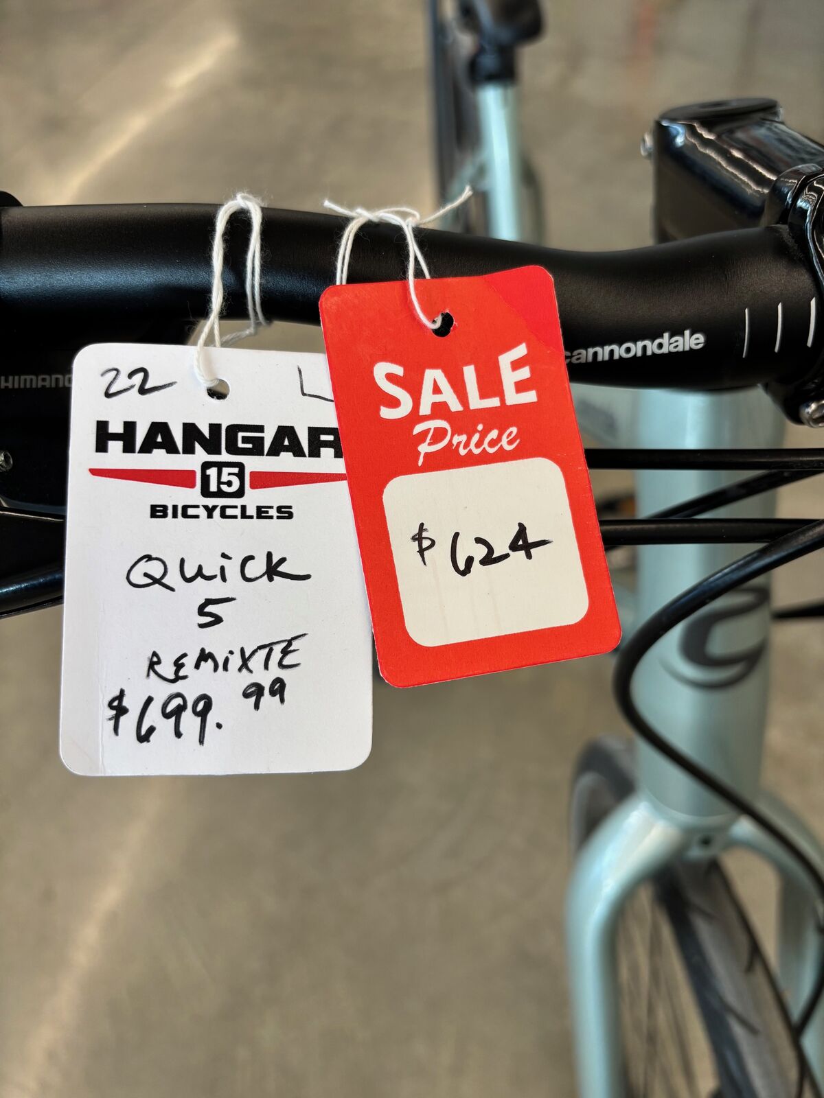 This is a brand new Cannondale Quick Disc 5 Remixte, Currently on sale. (MSRP: 699, Sale Price: 624). Bike comes with Cannondales full warranty. A swift, sporty bike that's perfect for getting a workout, city cruising, or just getting out and feeling good. This bike is a size Large which fit's people from 5'9" - 6'2". Feel free to come on in and give this bike a test ride at Hangar 15 Bicycles located in Lehi, Utah. If you have any questions please give us a call at 801-901-6370! We accept cash or credit card.