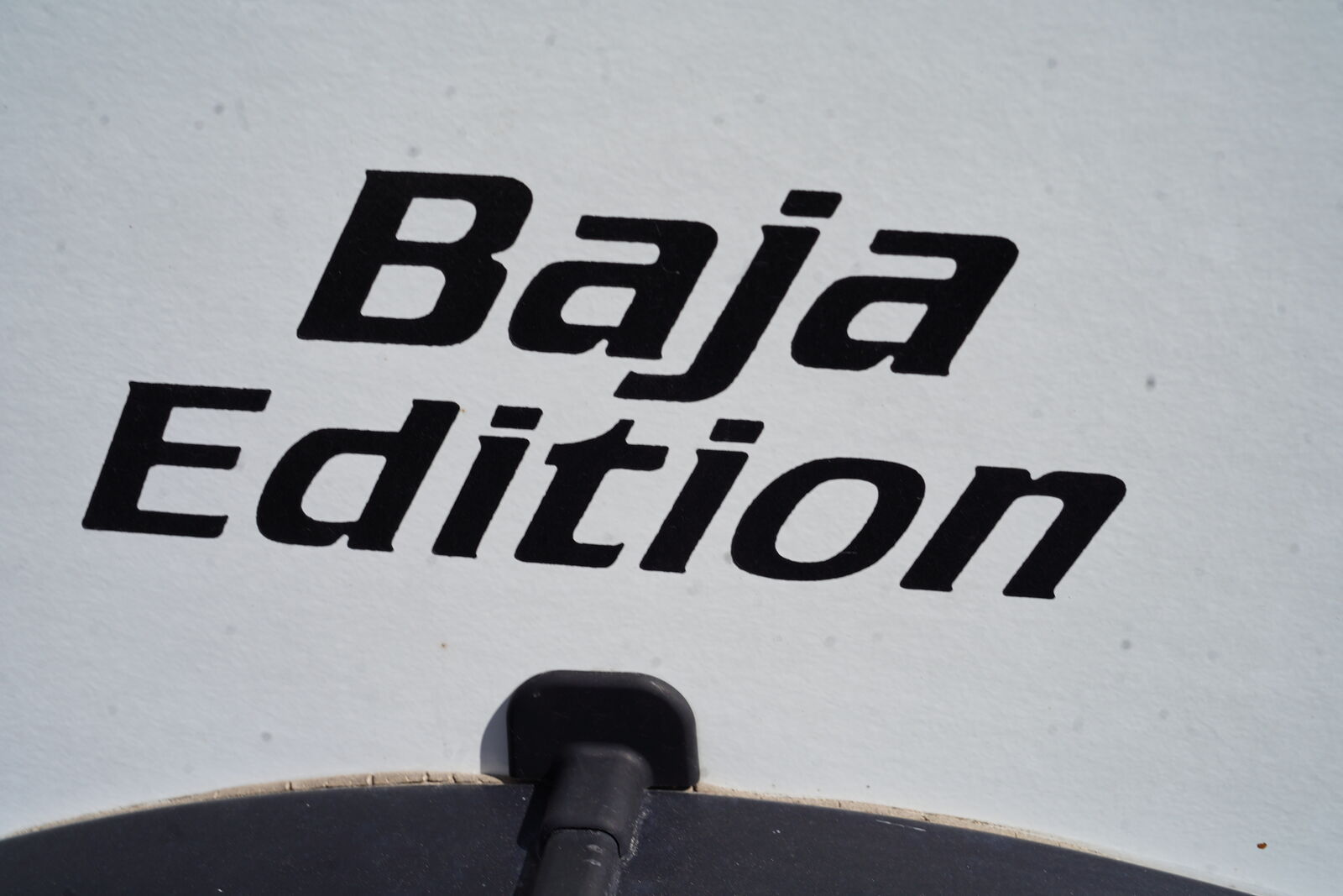SUCH A COOL TRAILER! QUEEN SIZE WALK AROUND BED and a HUGE REAR BATHROOM! BAJA EDITION! This is an AWESOME layout! Front Sleeper sofa folds down for the Murphy bed, and that allows for the BIG rear all enclosed bathroom! Perfect trailer for 2!