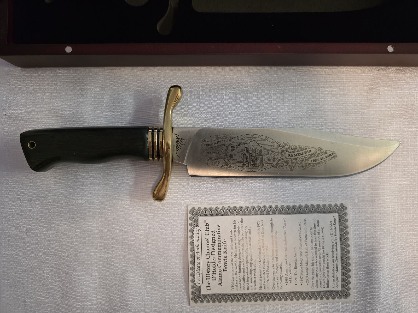 VenmoQuality knife with engraved blade, presentation case and certificate of authenticity.