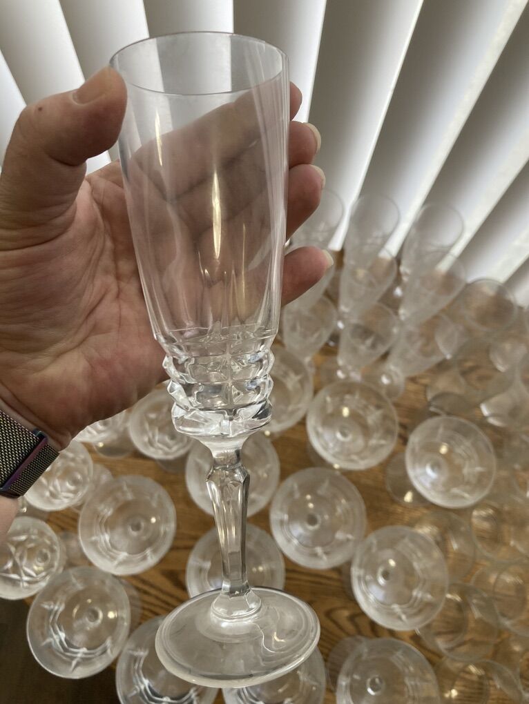 ApplePayFrench lead crystal flutes, champagne/sherbert glasses and wine glasses, from the 70s made in France. 12 in each set . And some regular glasses also in 3 different sizes. willing to sell separate! They are dusty in pics sorry. They just need cleaned. Asking around $100-$120 for each set of 12 glasses. Or $250 for the whole set.