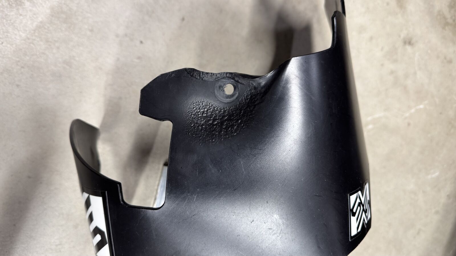 Good condition with all mounting hardware included. The pipe comes prettty close to the top of the plate in the front, so it gets affected by the heat a bit. Everyone I know that runs these has this same thing, and it happens on your first ride and then it is set. See pics. They run about $170 new.