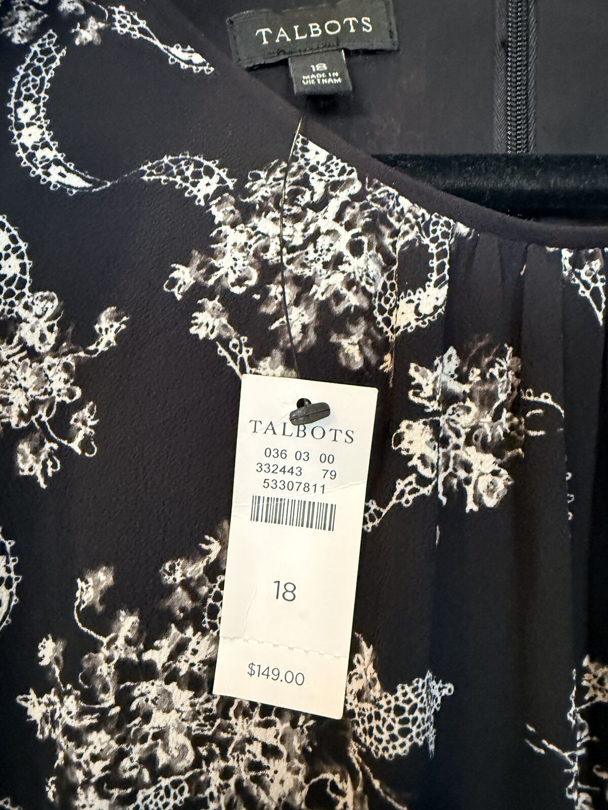 VenmoBeautiful Talbots women brand new dress size 18. The colors are black and White. It has great details on the dress. It is pleaded along the bottom of the dress. Cash or Venmo