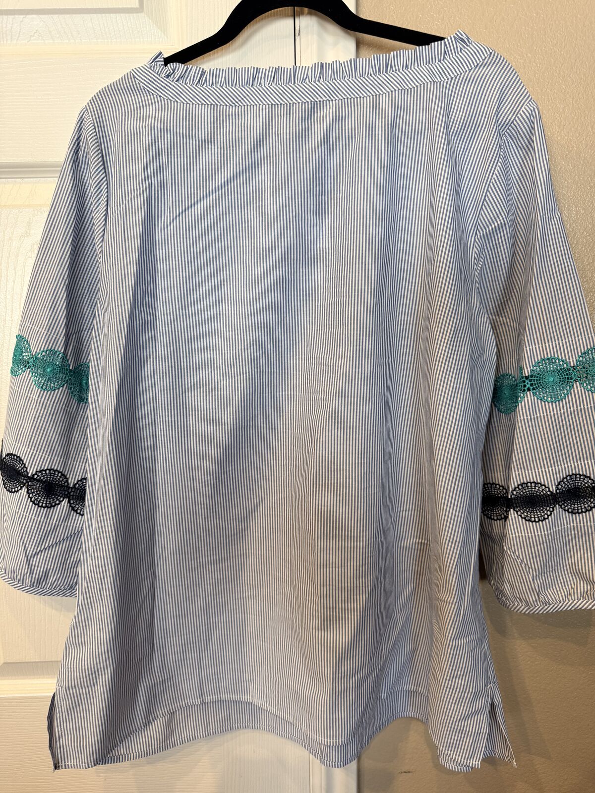 VenmoThis is a new Talbots women Size 1X striped shirt. This is a great looking shirt. It has a 3/4 sleeve. It is perfect for Spring and Summer. It has fun details on the shirt. Cash or Venmo.