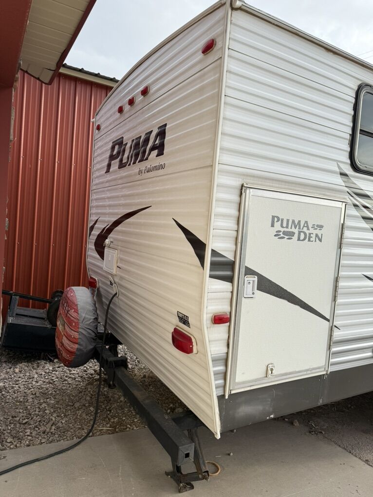 Very clean and well taken care of 2011 26FBSS puma by palomino! This trailer is in perfect condition and needs nothing, I’m the second owner just trying too sell for a toy hauler or fithwheel so I can pull doubles, with that being said I’ll trade for a nice fithwheel or toy-hauler ! *Has electric awning with zero tears or rotting *Zero water leaks or damage *Electric slide out *Two bunk beds with access door and tons of storage *Everything works (ac, furnace with central air, fridge and stove, oven and water heater *all the blinds and covers are perfect *has all season insulation *master bedroom with swiveling smart tv or mirror *outdoor/indoor stereo \