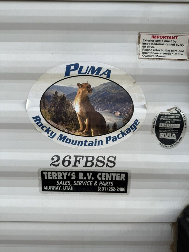 Very clean and well taken care of 2011 26FBSS puma by palomino! This trailer is in perfect condition and needs nothing, I’m the second owner just trying too sell for a toy hauler or fithwheel so I can pull doubles, with that being said I’ll trade for a nice fithwheel or toy-hauler ! *Has electric awning with zero tears or rotting *Zero water leaks or damage *Electric slide out *Two bunk beds with access door and tons of storage *Everything works (ac, furnace with central air, fridge and stove, oven and water heater *all the blinds and covers are perfect *has all season insulation *master bedroom with swiveling smart tv or mirror *outdoor/indoor stereo \