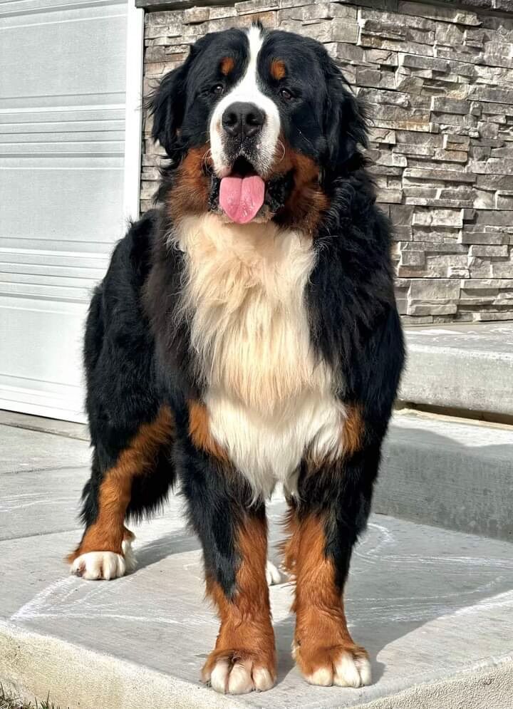 Meet Idalgo Pride of Justin, our 150 pound boy Imported from Ukraine. He boasts champion lines, clear health testing, and absolutely beautiful puppies. Check out our instagram to see some pictures of past litters he has aired. @Echo_River_Bernese
