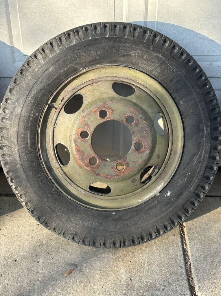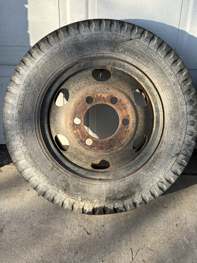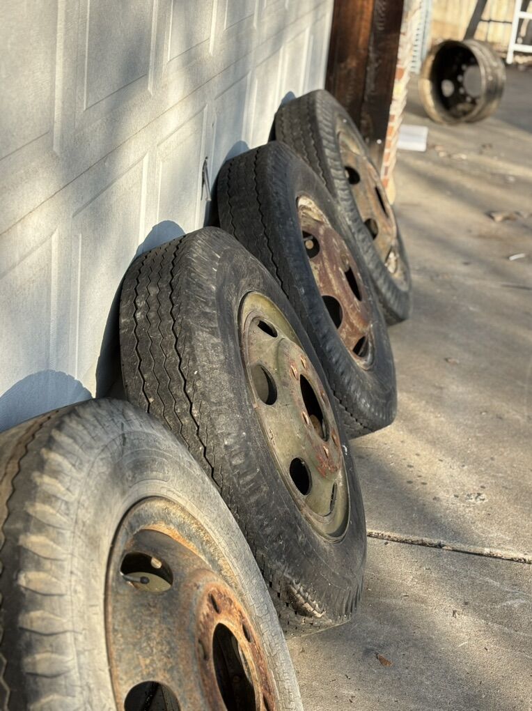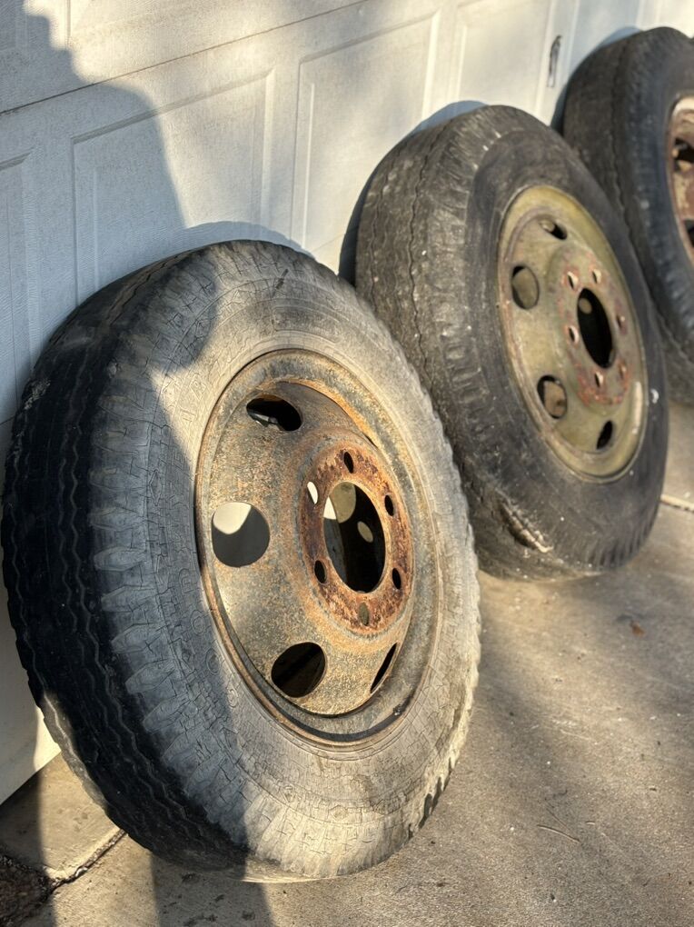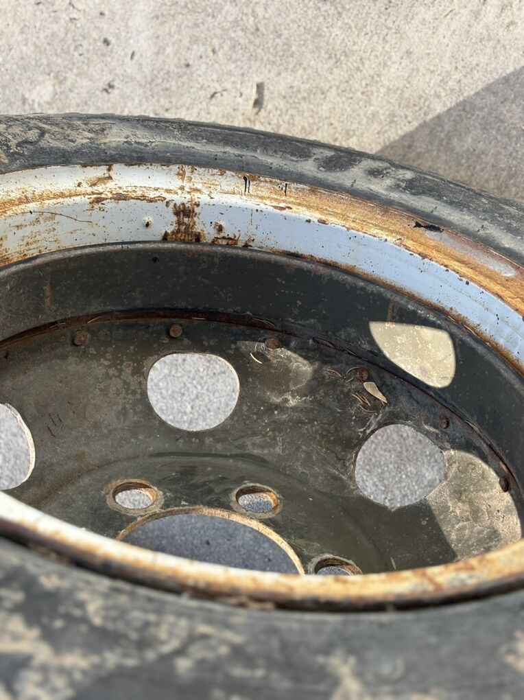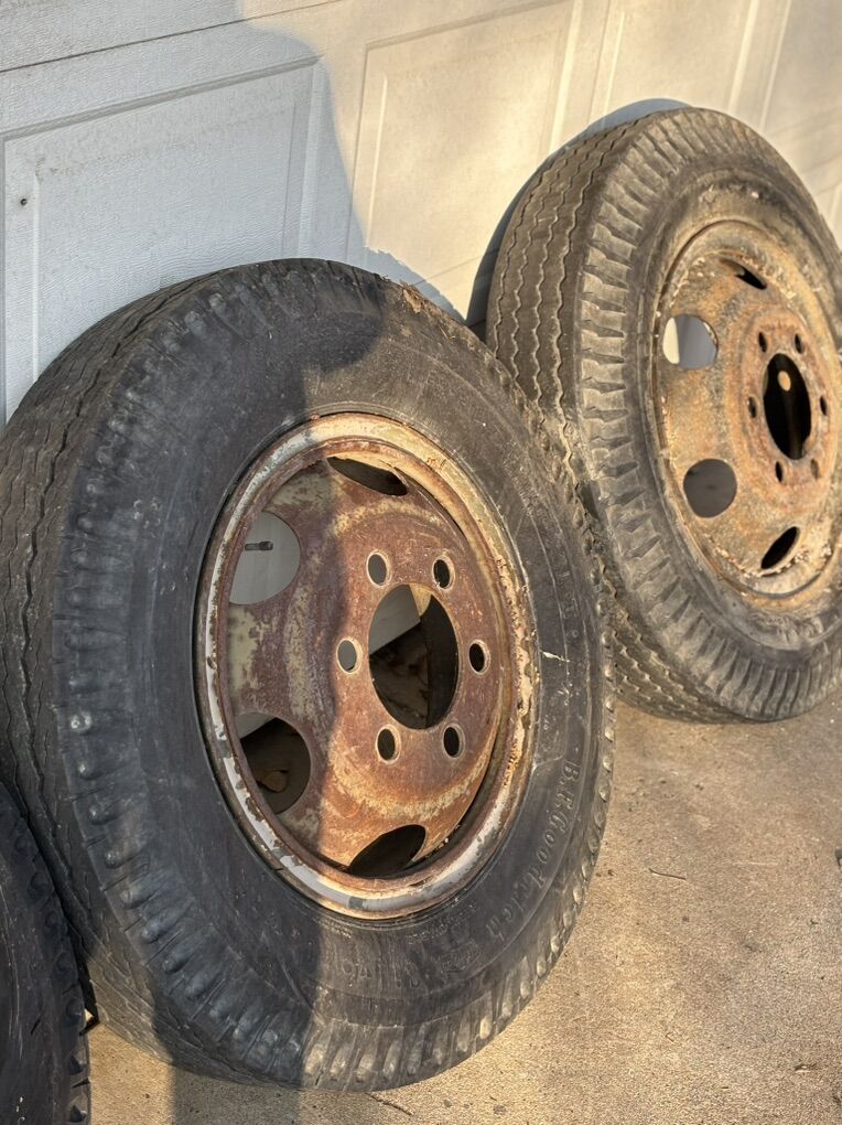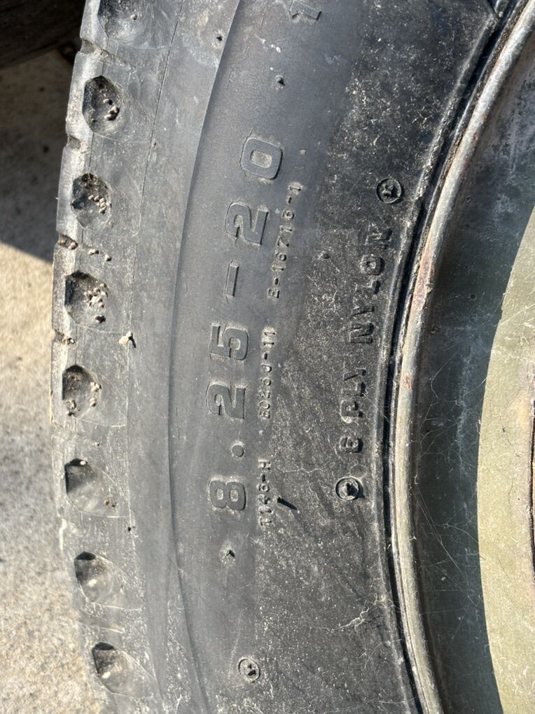 These are 8.25-20 wheels and tires. They are the old school massive 6 lug. 2 of them I believe are split rim and the other 2 I believe are normal. These things have seen a lot but we do not use them and they are of no use to us. $20 obo.