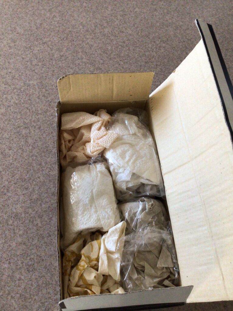 Venmo7 1/2”, 8 1/2”, 9 1/2” candleholders. One holder is broken and the votive candles are melted due to being stored in a hot garage.