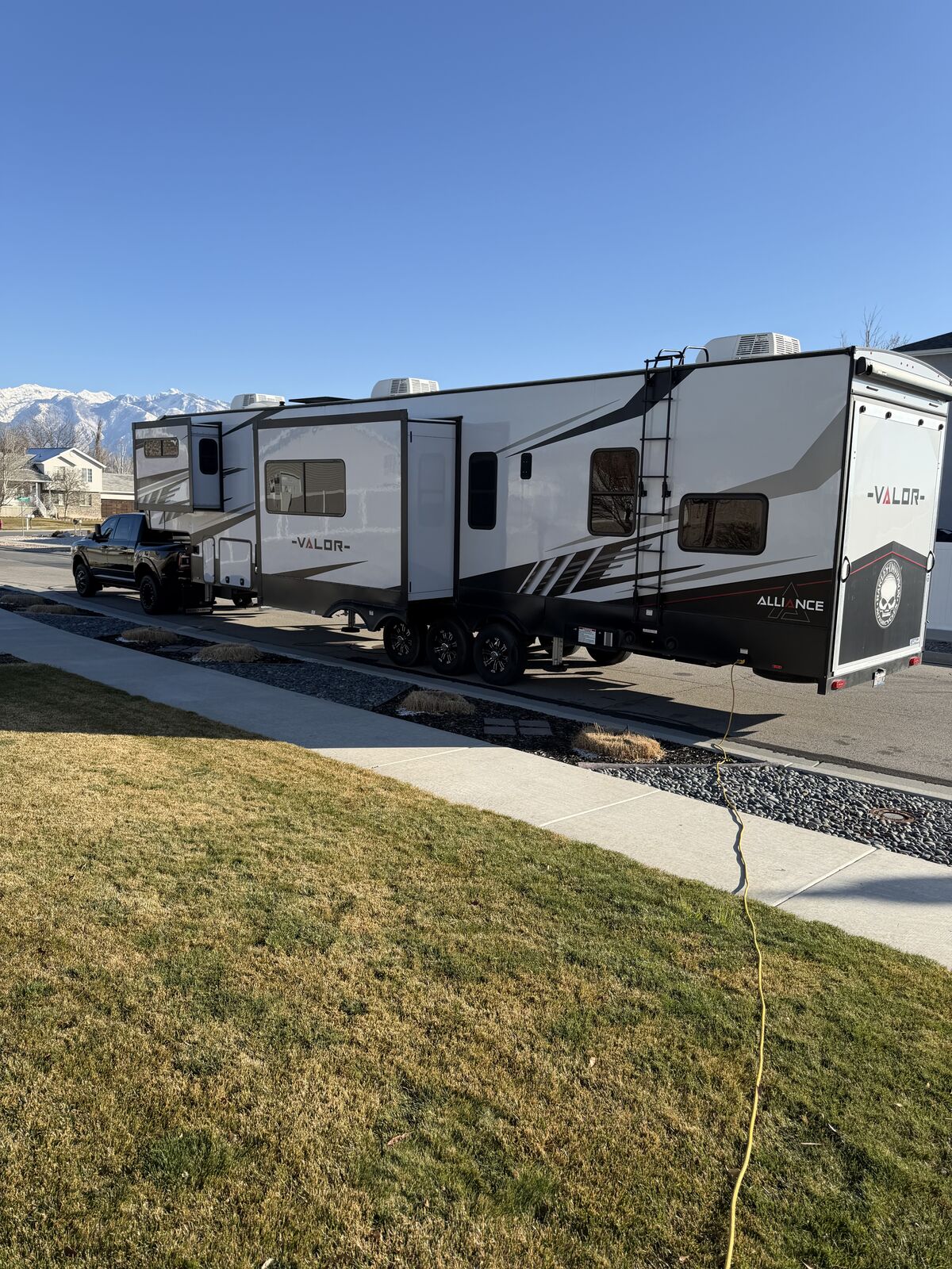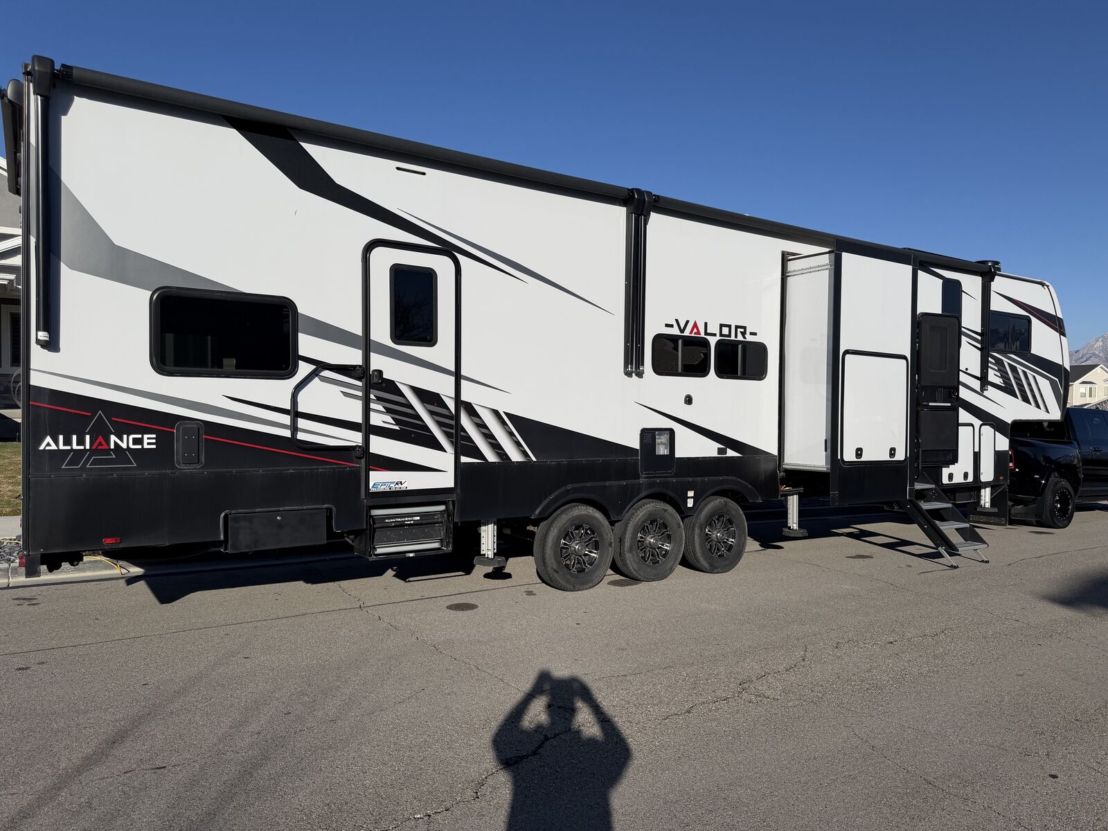 Alliance Valor 40V13 in immaculate condition. We sadly have to move on from this amazing toy hauler. it's definitely one of the best brands and models out there. We spent a lot of time and energy making it our own, hoping to find a new home for someone to enjoy this rig as much as we have. Lots of upgrades, most everything on this unit runs on 12v.