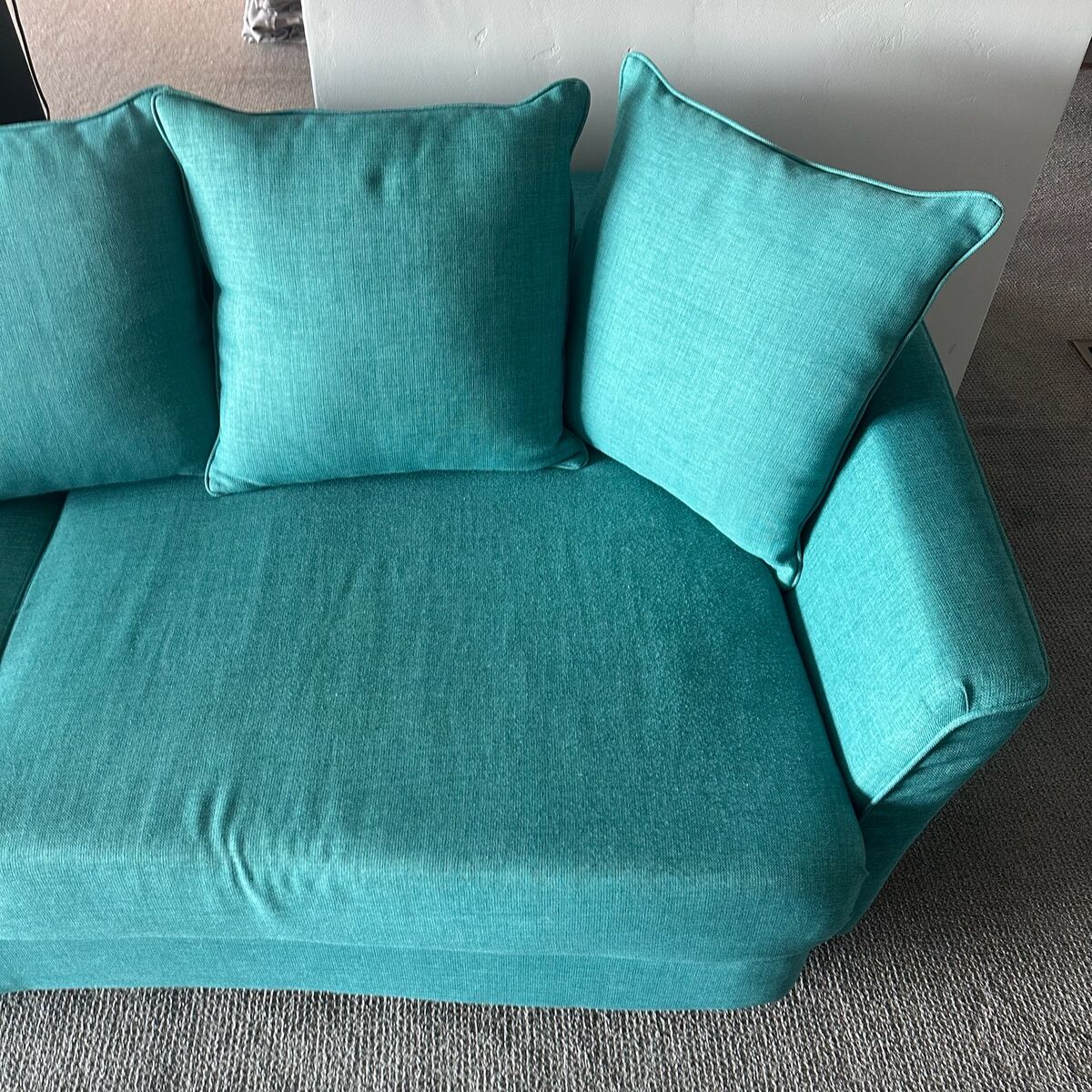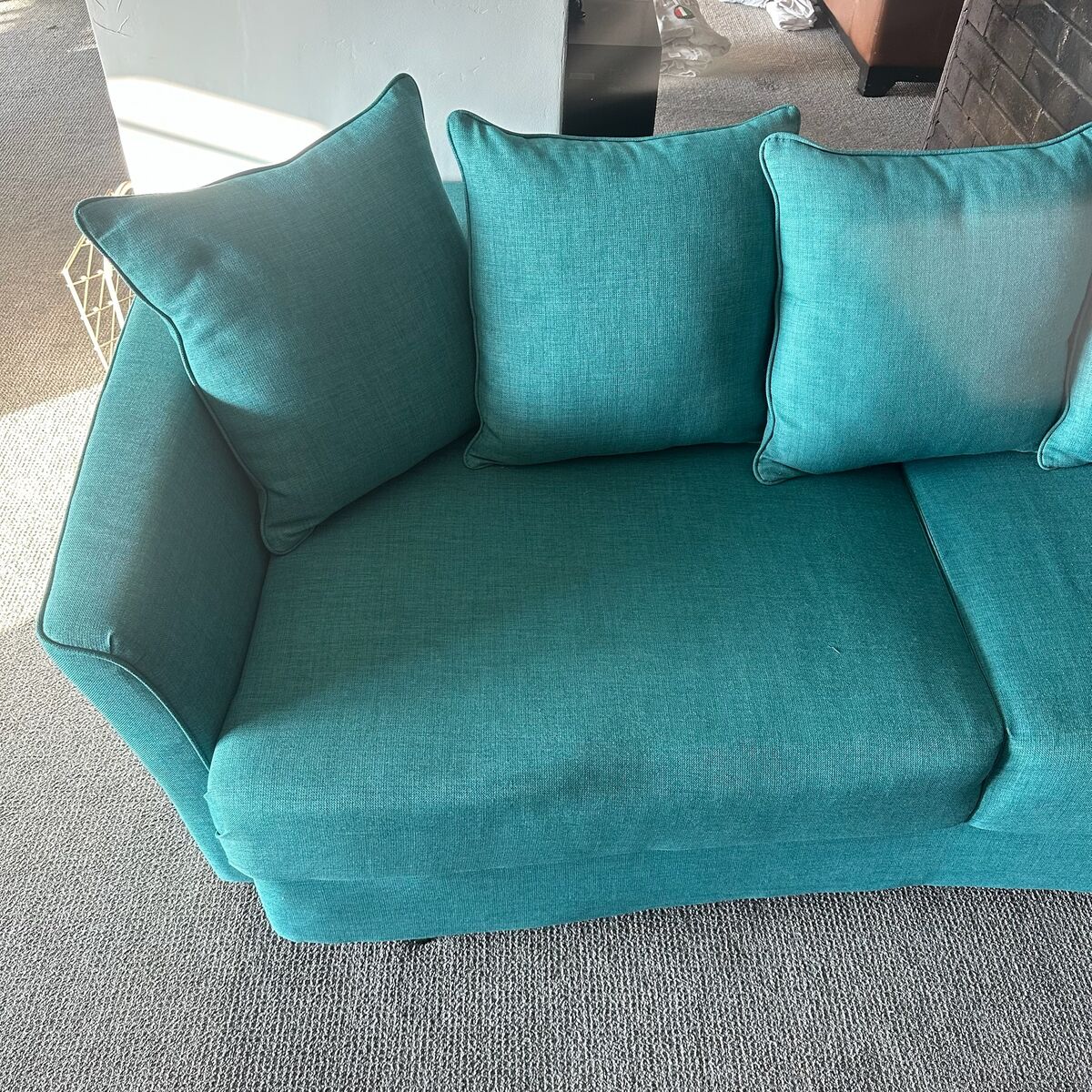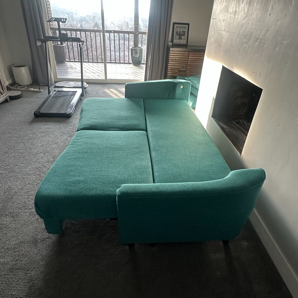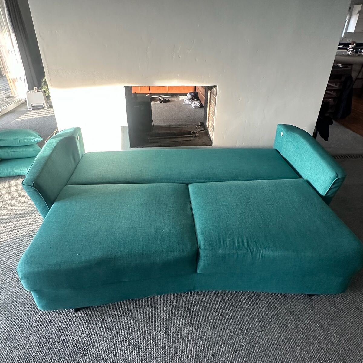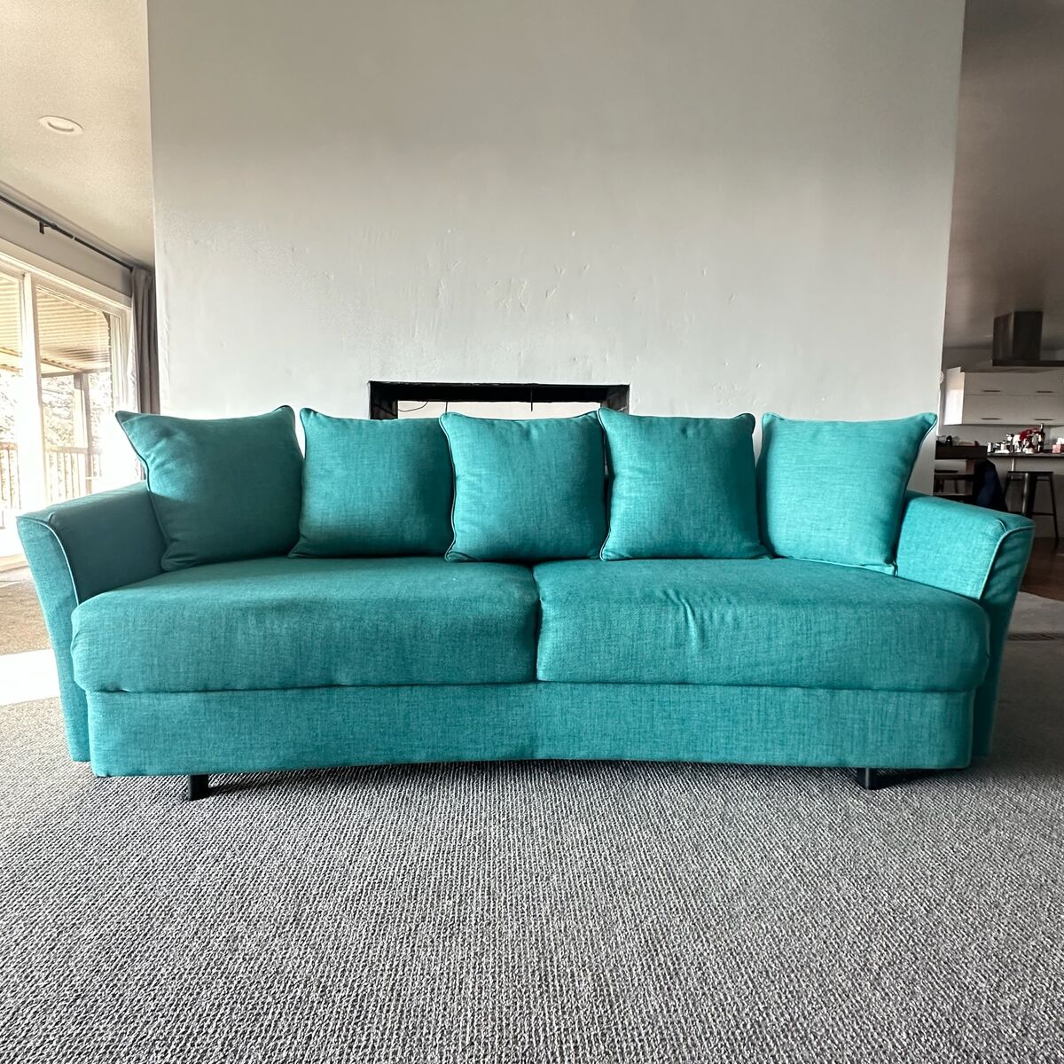 VenmoModern Teal Curved Couch/Bed with Accent Pillows