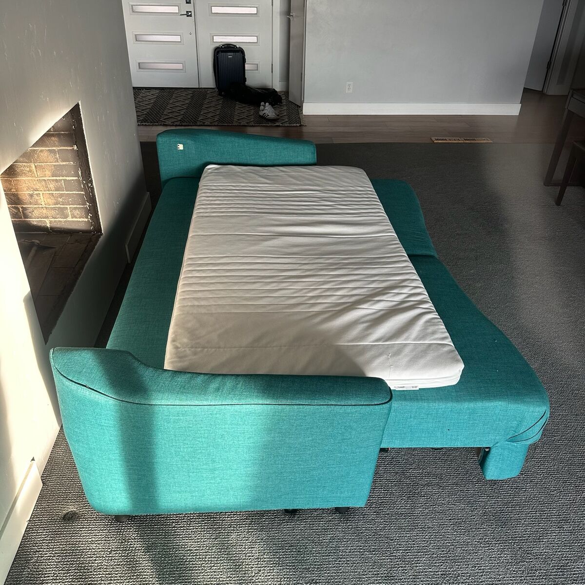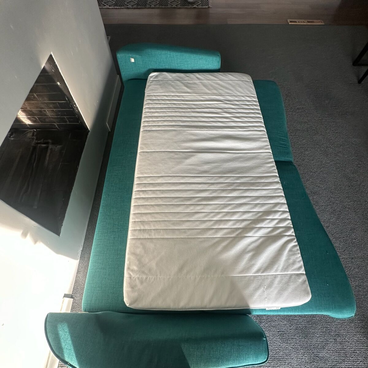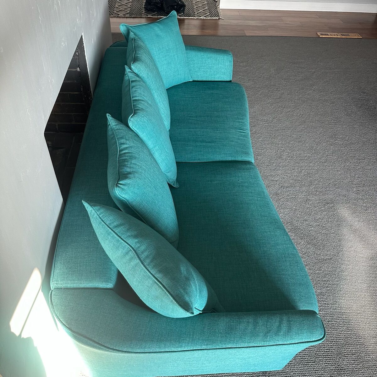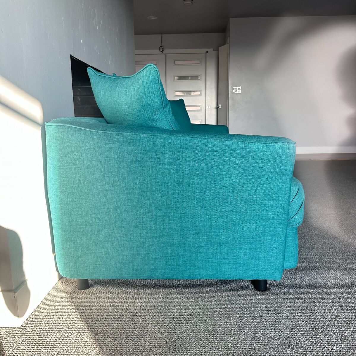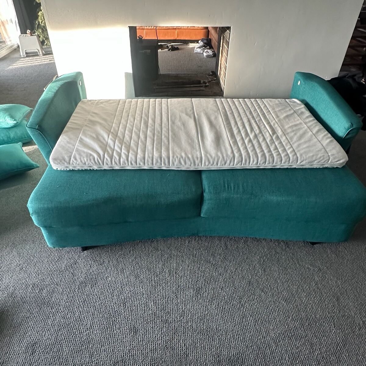 VenmoModern Teal Curved Couch/Bed with Accent Pillows