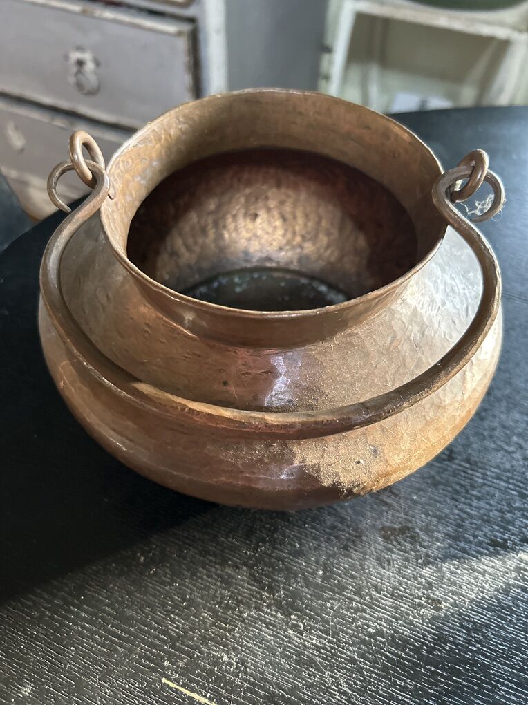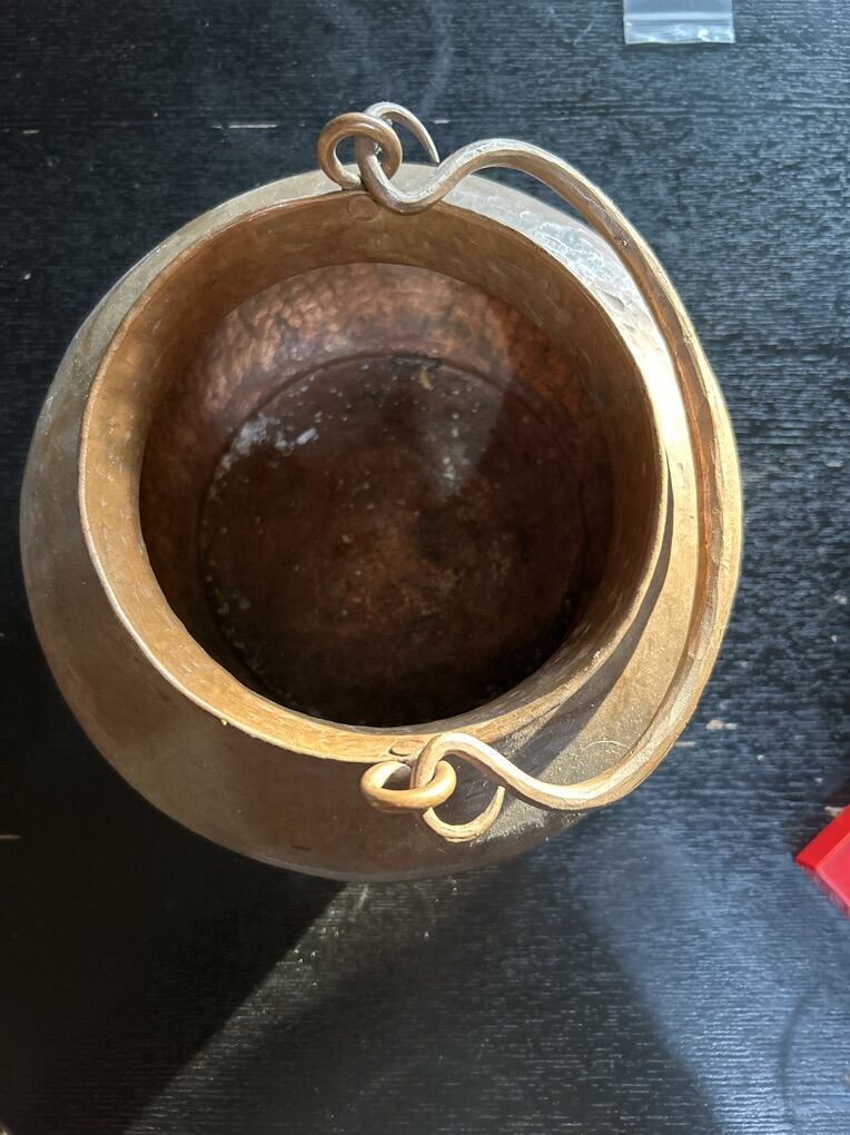 Antique All Copper Hand Hammered Pot Forge Handle. 8 inch by 4 3/4 inch