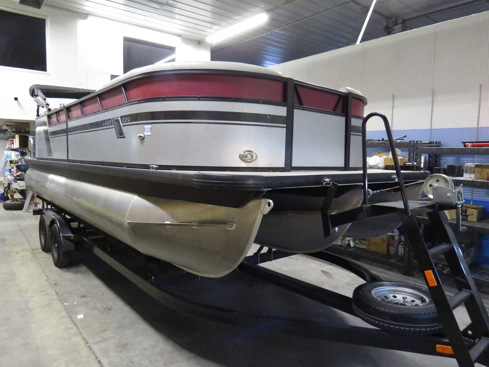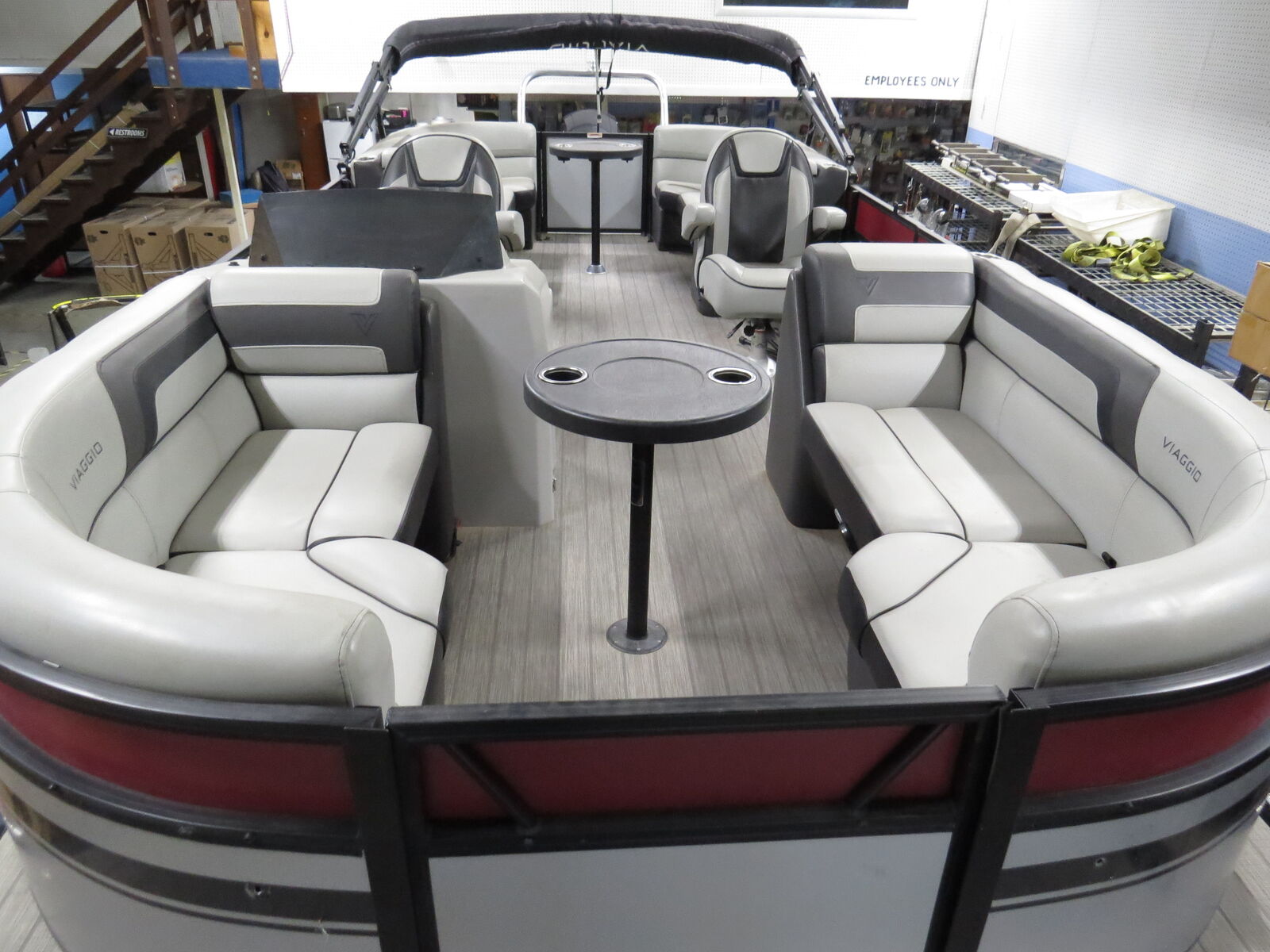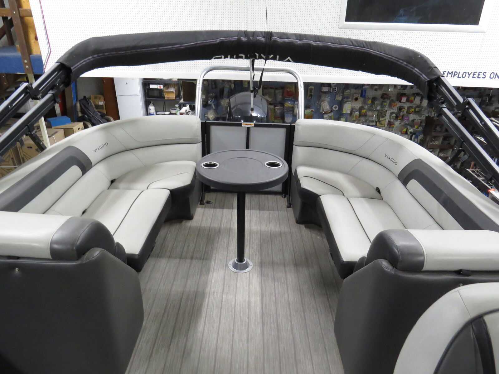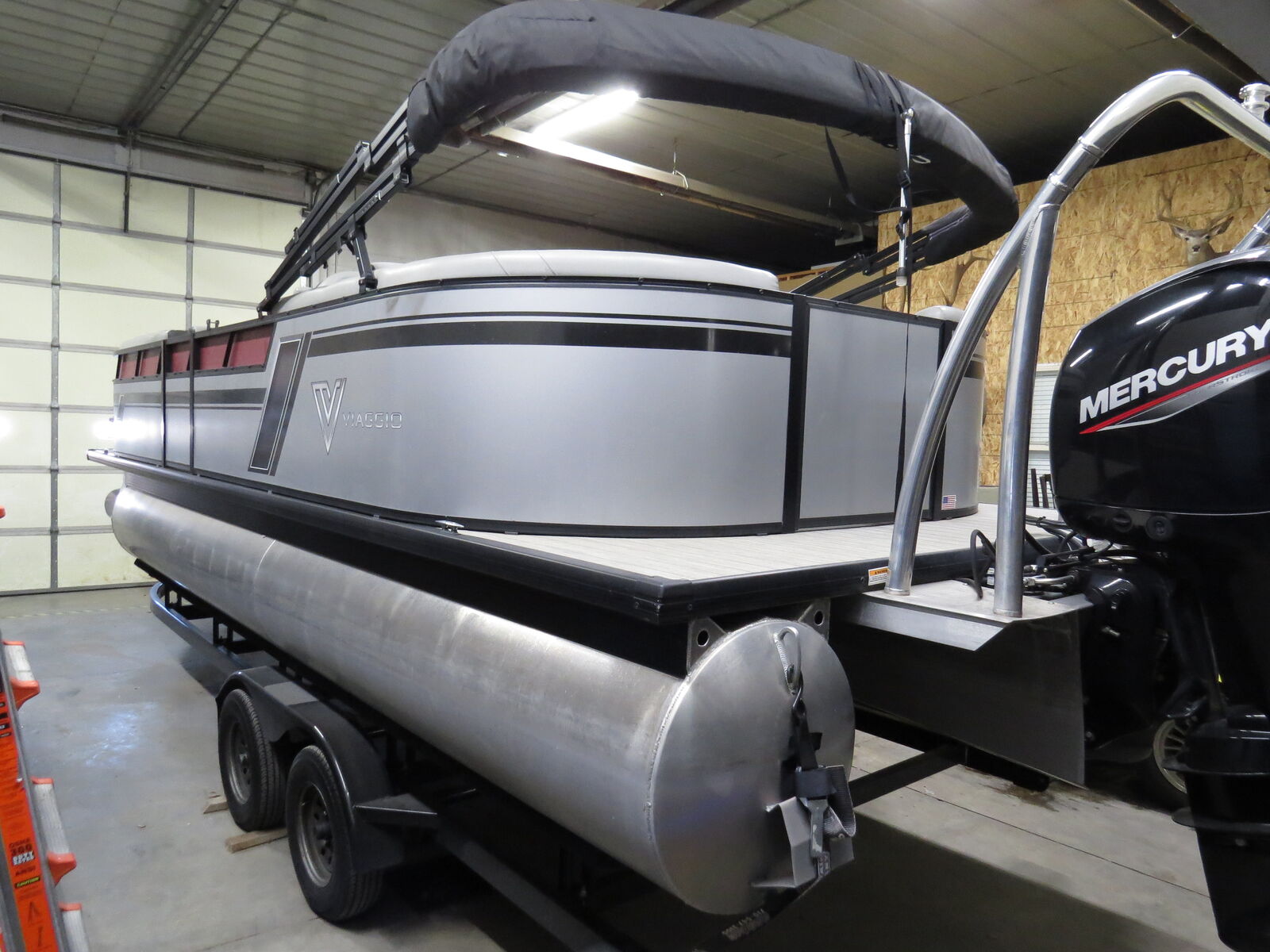 2022 Viaggio Lago 22U Pontoon boat has an 150 HP out board Mercury Motor, interior in great shape, Tri-Pontoon, Tandem axle trailer.