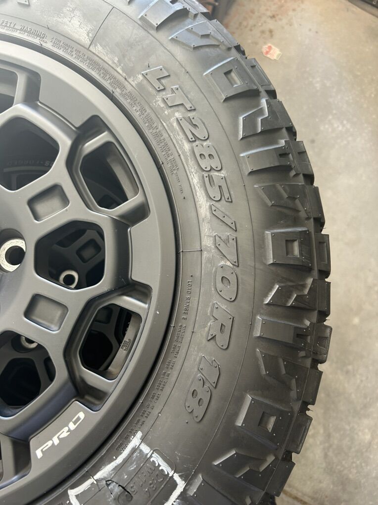 Key words: BF Goodrich KO3 KO2, Falken Wildpeak, Good Year Toyo Yokohama TRD Pro Toyota Tundra Sequoia Tacoma F-150 Raptor Jeep Rubicon rims Mud tires. 285/70/18, 275/70r18 275/70/18. 285/70/18