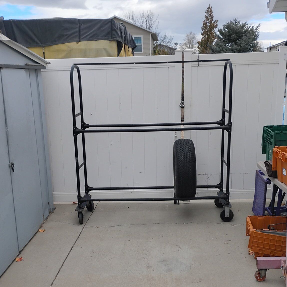 Venmometal rolling tire rack holds over 16 tires $20 cash or venmo