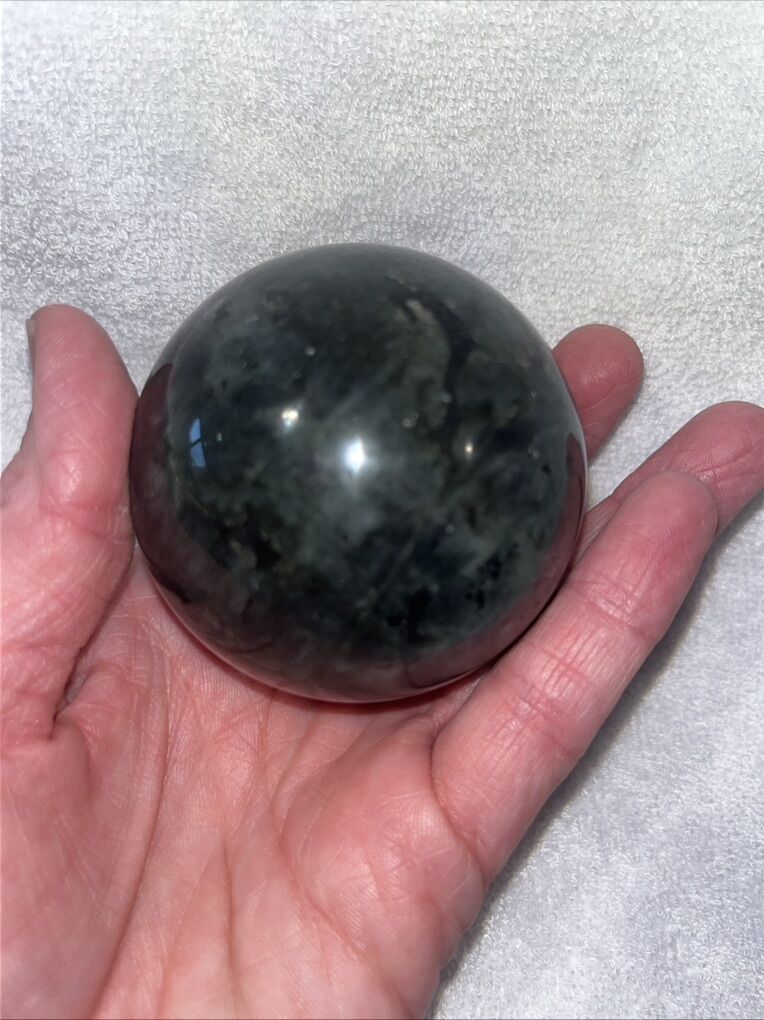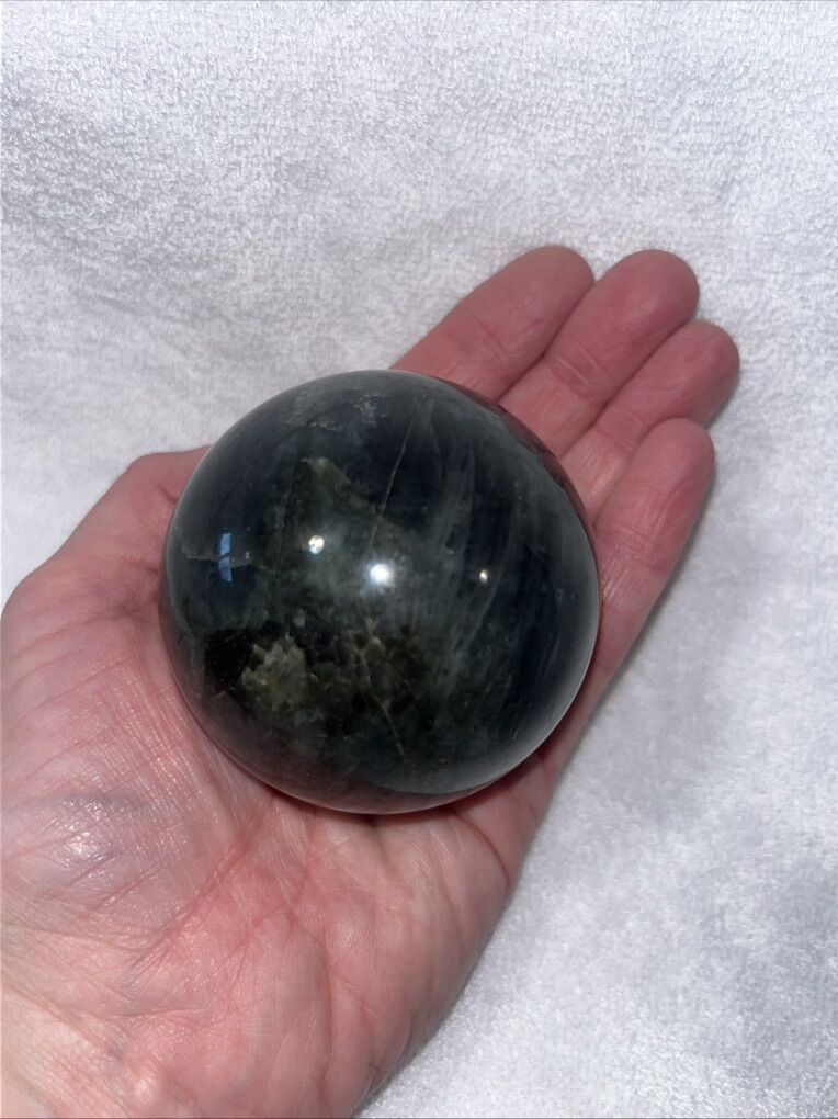 ZelleNew Labradorite Crystal Sphere 2-3/8” 60mm Ball Handmade 13oz Black Turquoise