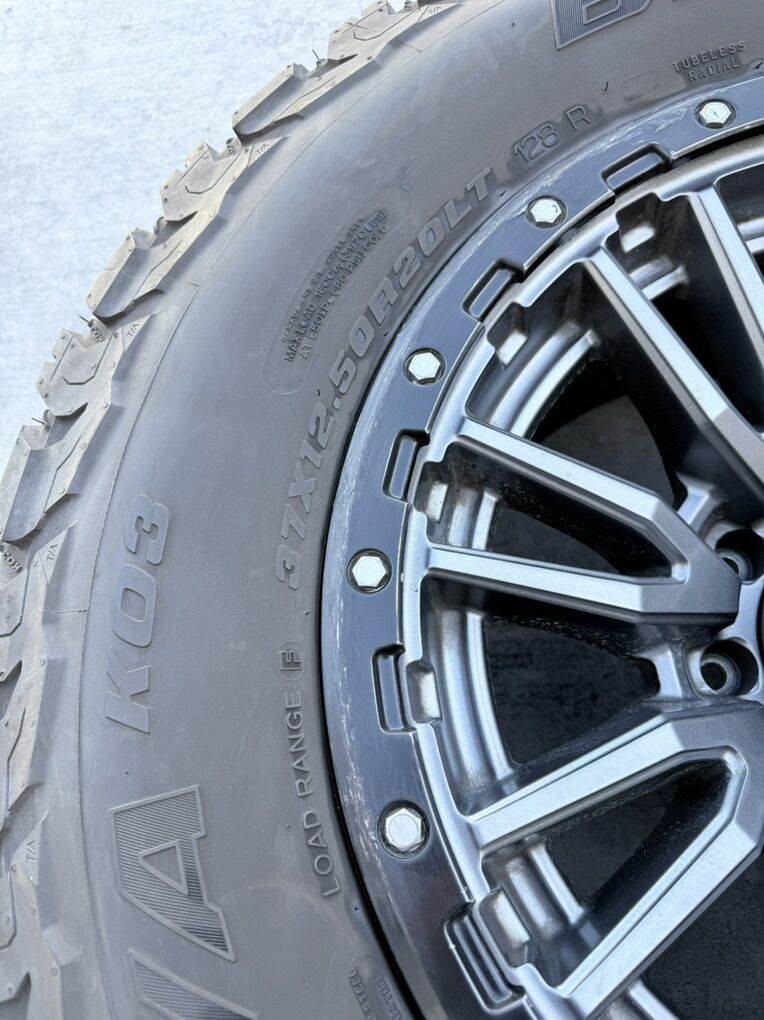 ApplePaySet of 4-Dodge ram 3500 Chevy Rims and Tires 37/12.50R20 Bfgoodrich Ko3 Load F 12ply in great condition,asking $2600 obo Tires have 12000 miles on them Rims are in good condition,have some minor curb rash and they were painted touch up