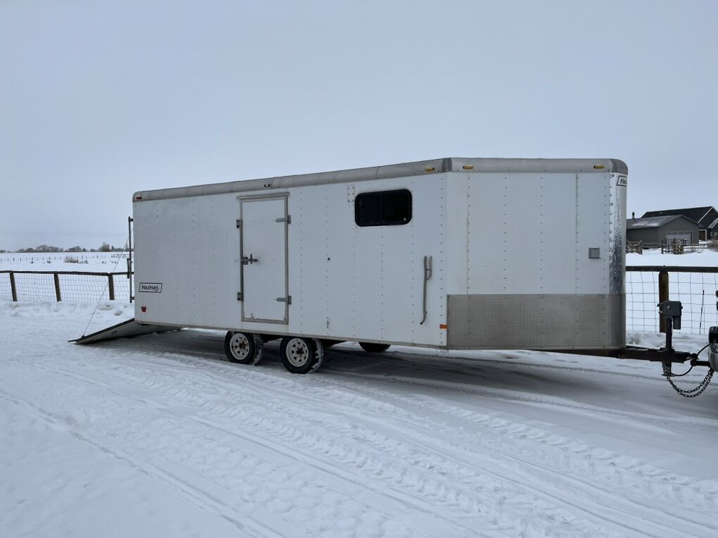 Trailer 2005 Hallmark. 18ft plus v nose. I have fit 4 but very tight it fits 3 pretty good.