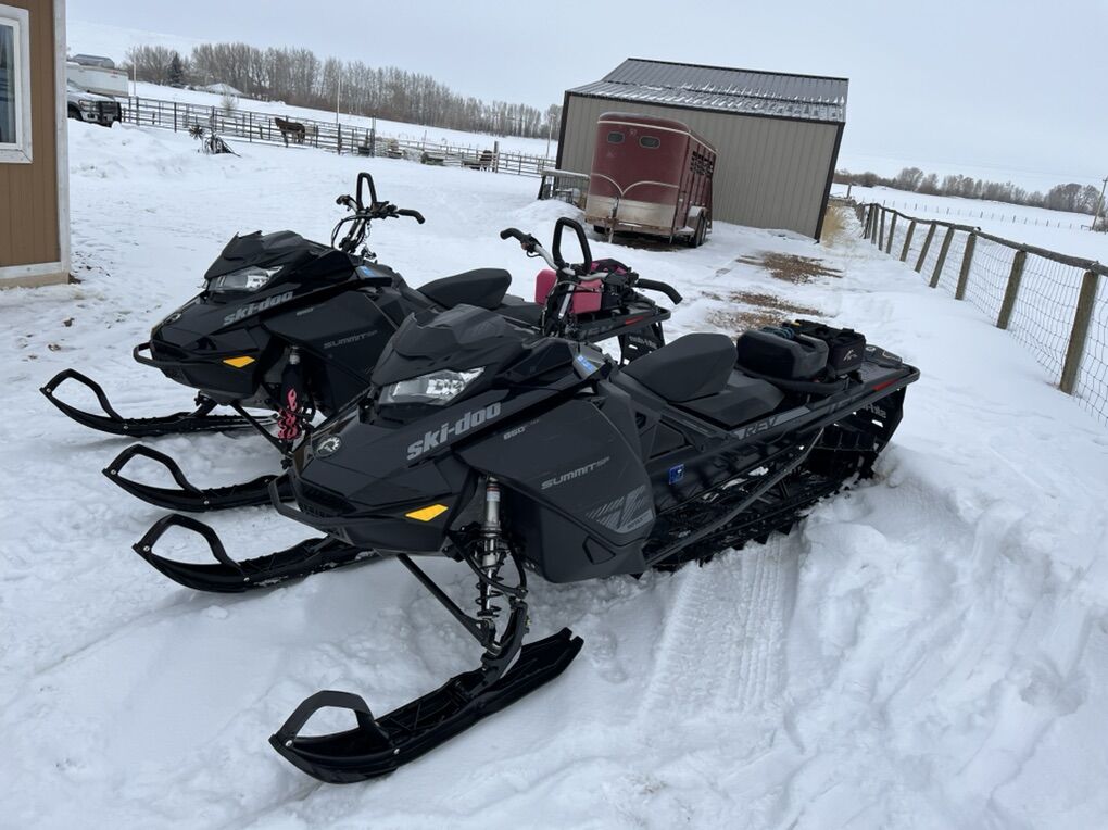 2019 skidoo summit SP 850’s 3” tracks with shot start. Both have tow bumpers we pulled a snow coach with the kids I have the stock bumpers.