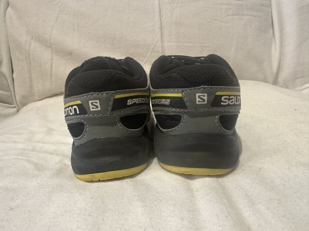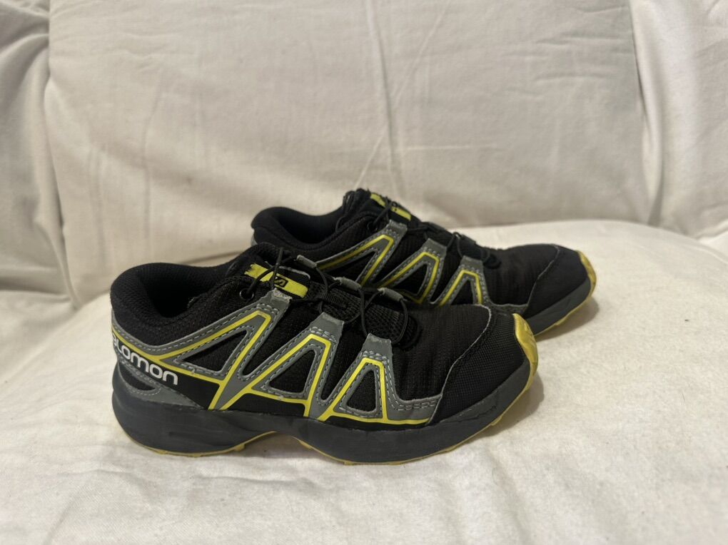 Salomon youth size one black with yellow trim, speed cross trail shoes. These are in good condition, see photos for details. I take cash or Venmo, but cash is preferred. Text is best. 801-201-4446. Check out my other ads for additional sizes and styles.