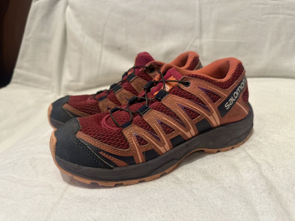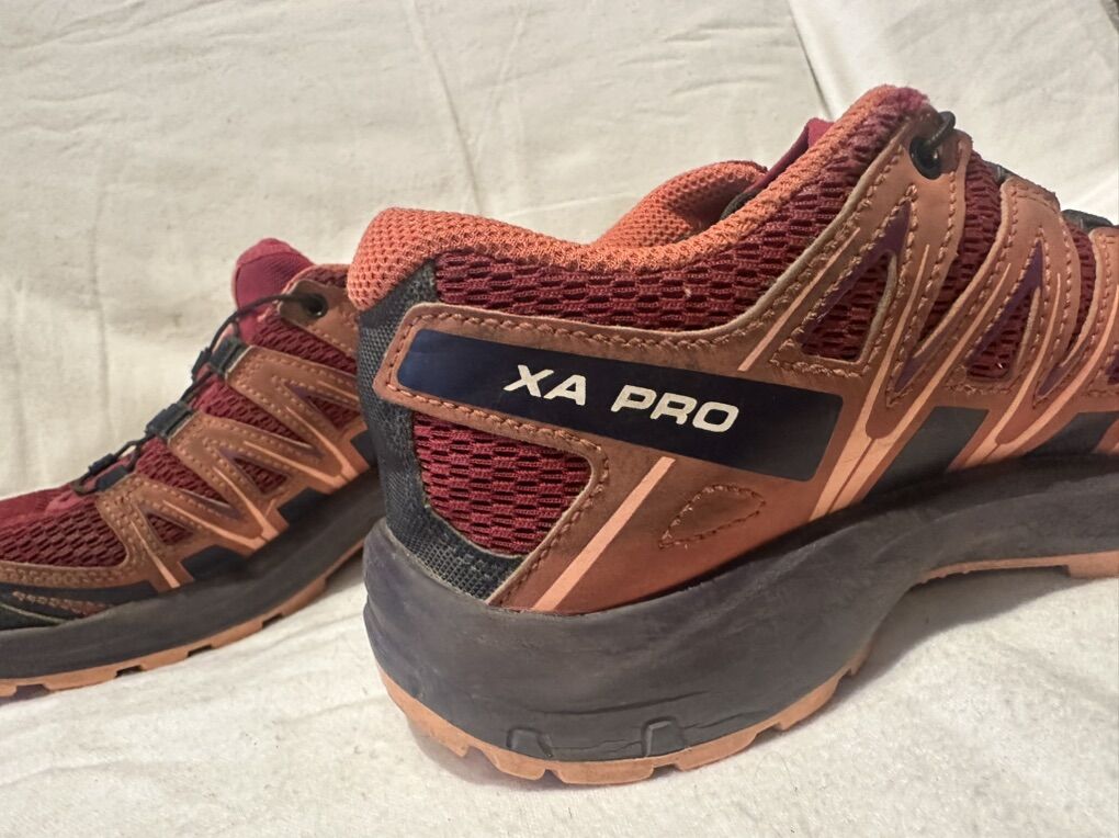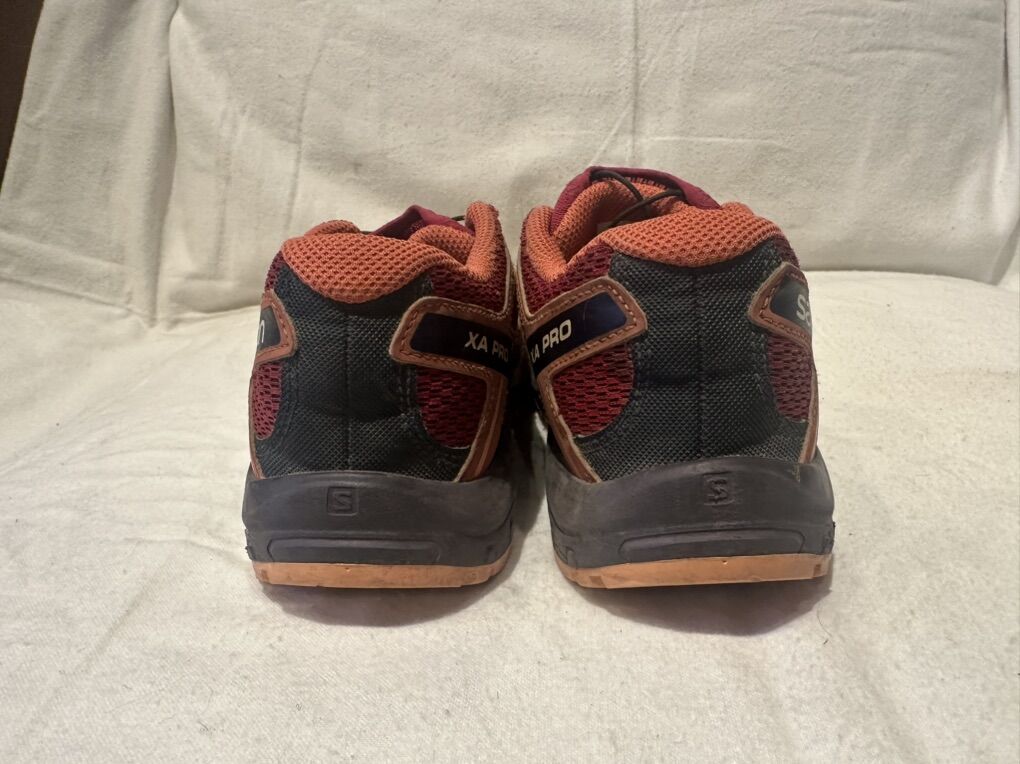 Salomon youth size 3 XA pro red and orange mesh and textile trail shoes. These are in good condition, see photos for details. I take cash or Venmo, but cash is preferred. Text is best. 801-201-4446. Check out my other ads for additional sizes and styles.