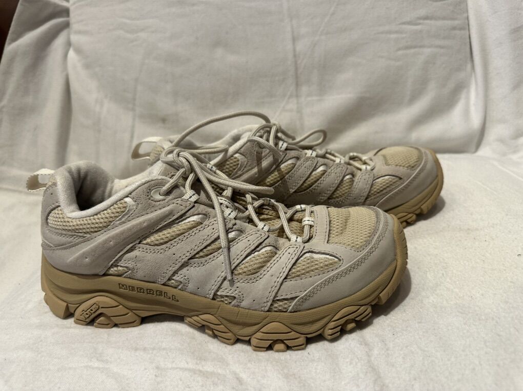 Merrell women’s size 10 ecru leather and mesh hiking shoes. These are in excellent condition, see photos for detail details. I take cash or Venmo, but cash is preferred. Text is best. 801-201-4446. Check out my other ads for additional sizes and styles.