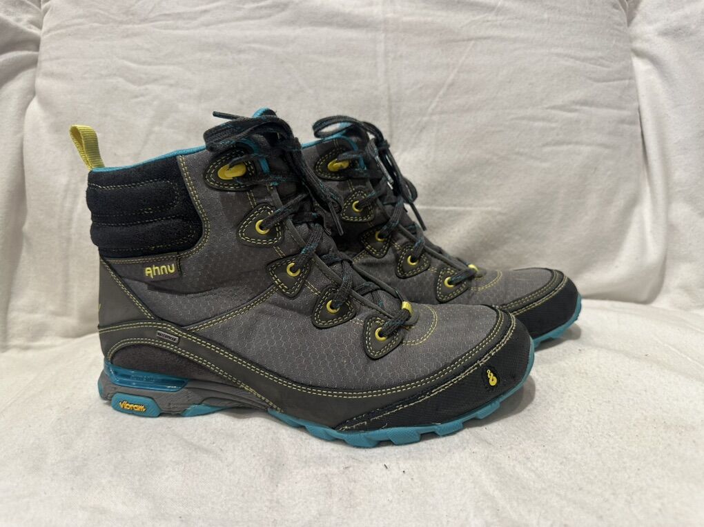 Ahnu (made by Teva) women’s size 9 gray with beach, blue trim lightweight waterproof mid hiking boots. These are in good condition, see photos for details. I take cash or Venmo, but cash is preferred. Text is best. 801-2014446. Check out my other ads for additional sizes and styles.