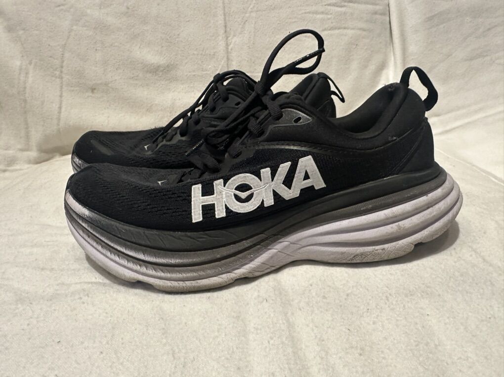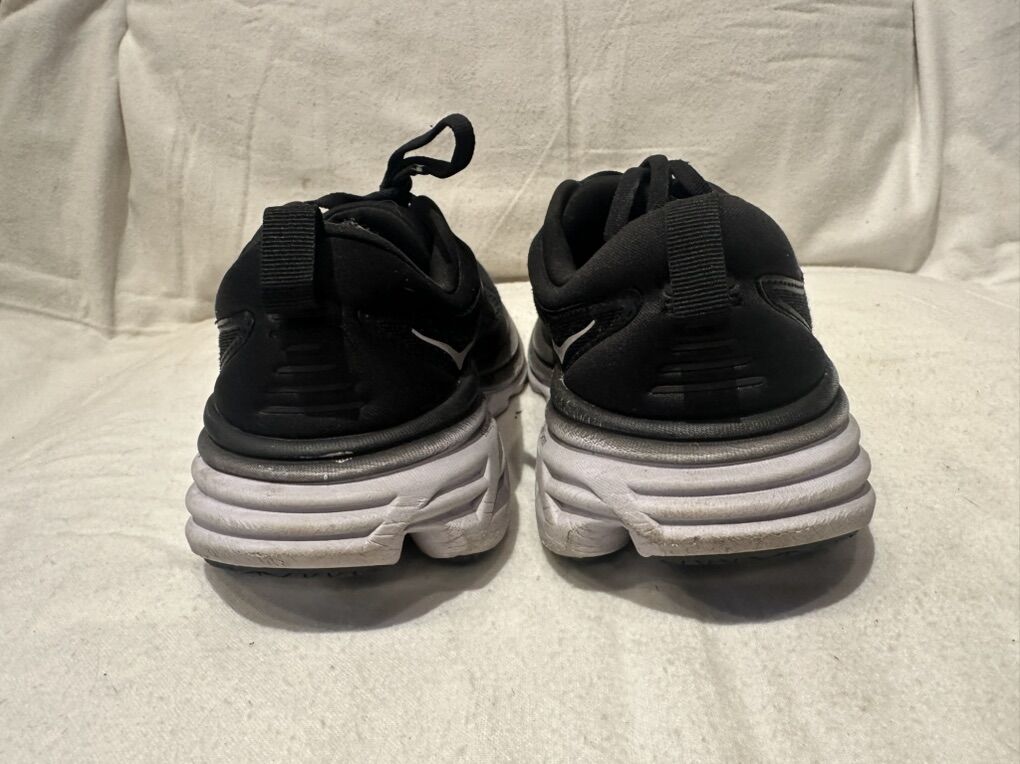 Hoka Bondi 8 women’s size 6 black running shoes. These are in good condition, see photos for details. I take cash or Venmo, but cash is preferred. Text is best. 801-201-4446. Check out my other ads for additional sizes and styles.