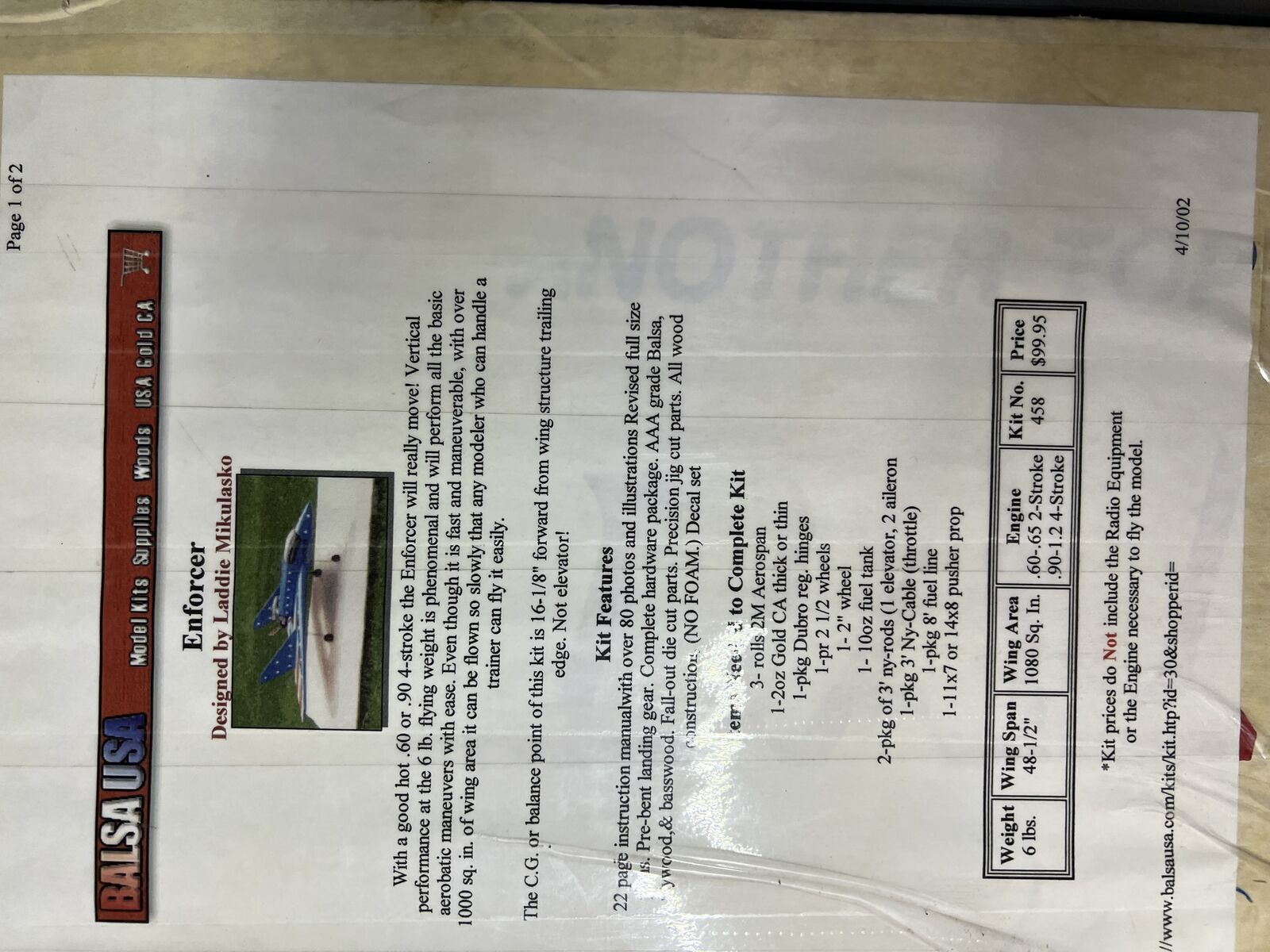 ApplePayNew in Box Balsa USA "Enforcer" kit.